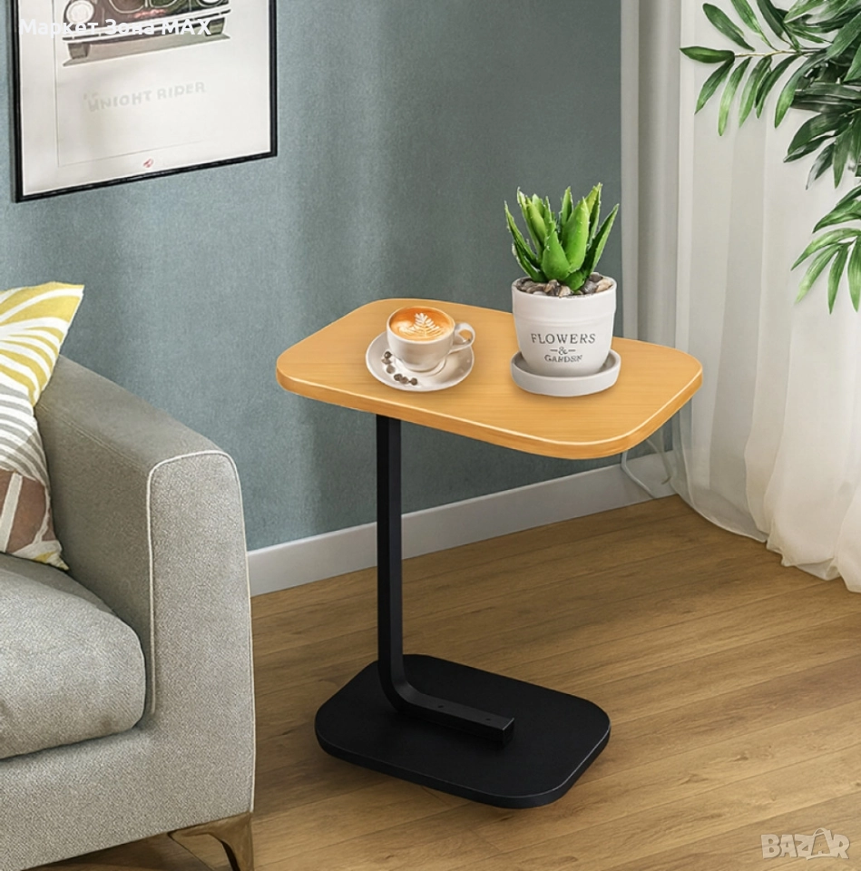 Многофункционална – идеална за кафе, работа с лаптоп, декорация или книга; C-образна – можете удобно да я плъзнете под диван или фотьойл; Компактен размер – заема малко място; Модерен дизайн – подхожда на всеки декор; Лесно почистване – просто избършете с влажна кърпа; Лека конструкция – лесна за преместване. Характеристики: Размери: 40 см x 30 см x 60 см.; Размери на основата: 30 см x 20 см.; Материал: Мебелна дъска, метал; Цвят: Черен с кафяво, бял с кафяво; Форма: Овална, правоъгълна. Употреба и приложение: