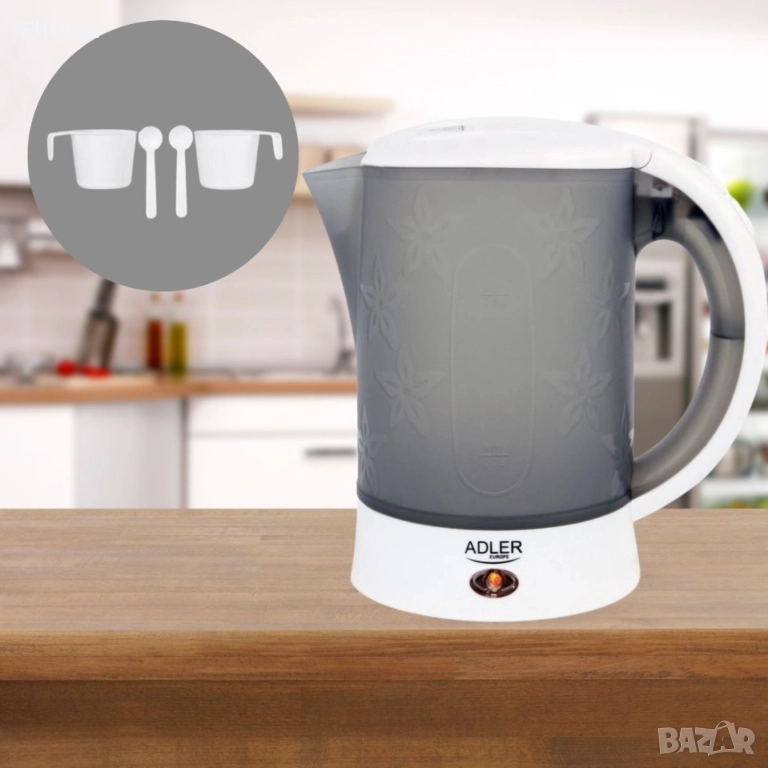 Електрическа кана Adler AD1268, 600W, 0.6l, сив, 2 ГОДИНИ ГАРАНЦИЯ