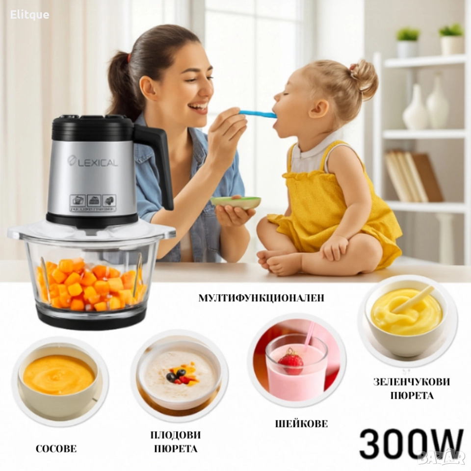 Електрически чопър Lexical LCH-1956 с 6 титаниеви ножа и стъклена купа
