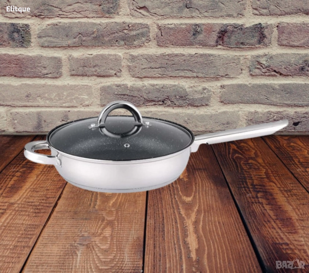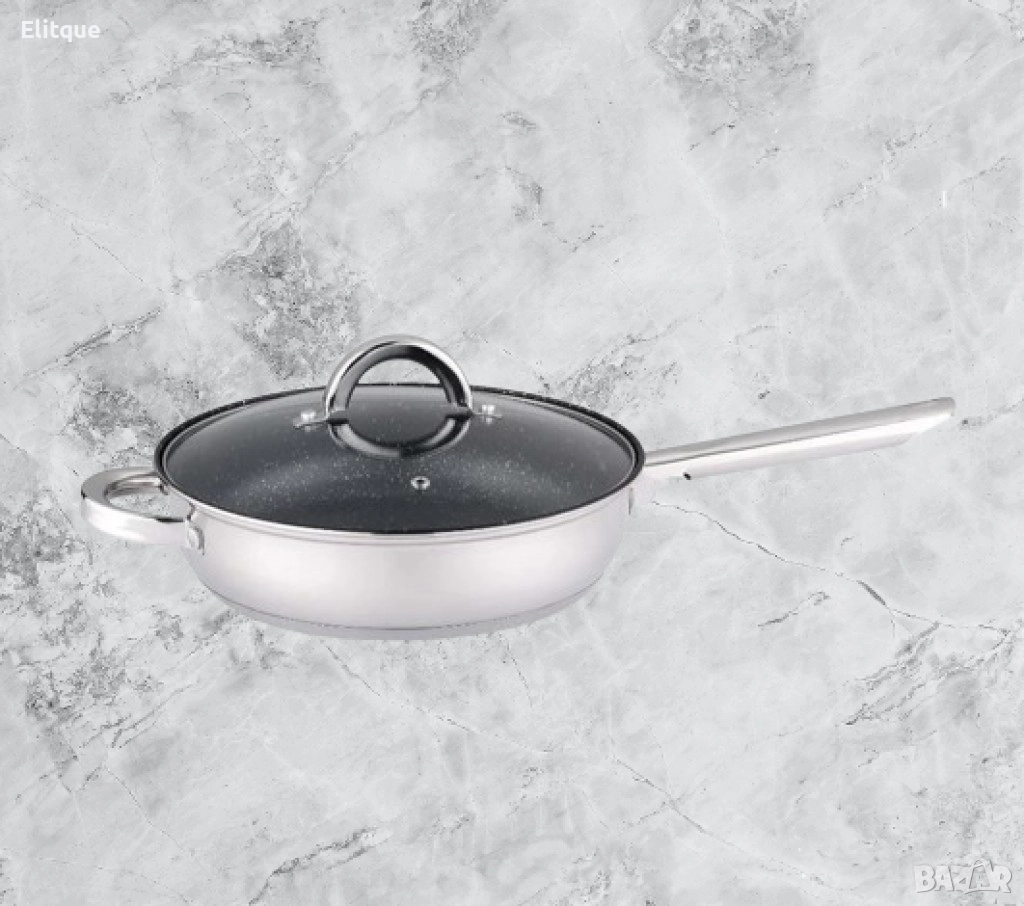Тиган с капак Rosberg 24x6.5см., Неръждаема стомана, Мраморно покритие
