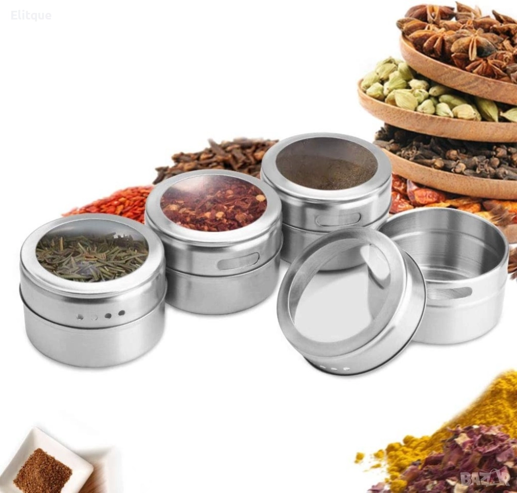 Подарете удобство и стил за вашата кухня с практичните бурканчета за подправки от неръждаема стомана, в комплект с прекрасна магнитна стойка за лесно съхранение. Идеални за съхранение на подправки, ядки, билки или каквото друго ви хрумне.