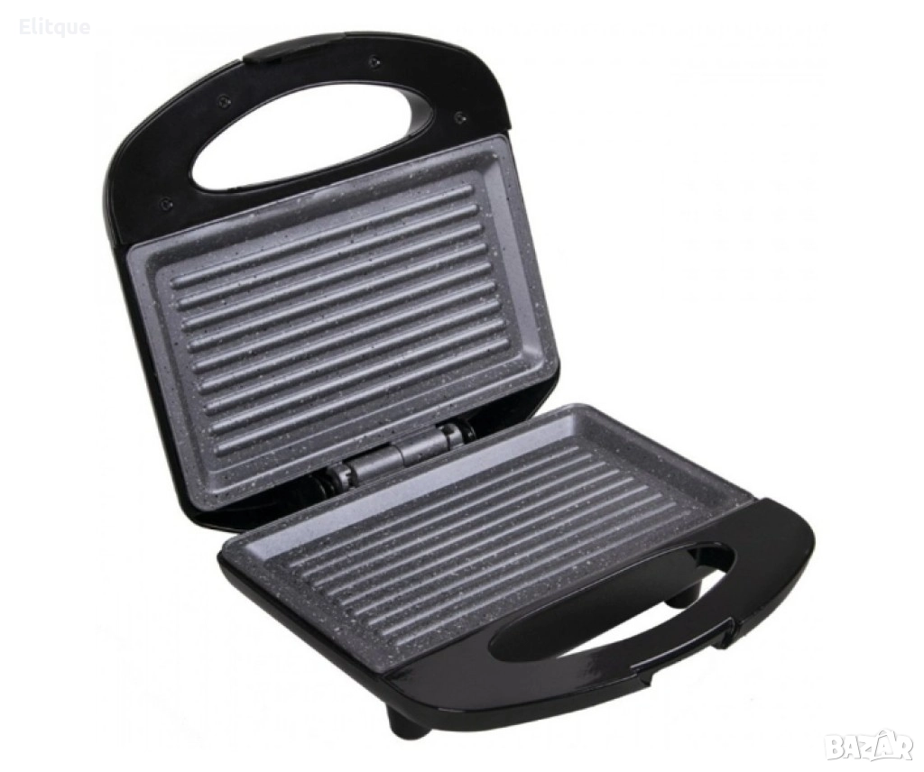 Сандвич тостер за 2 филийки с ненагряващ се корпус. Плочи с керамично мраморно незалепващо покритие против залепване и загаряне на храната и за лесно почистване. Без съдържание на PFOA химикали за здравословно готвене. Светлинни индикатори за включено захранване и за готовност. Гумени крачета против пързаляне. Захранване: 220-240V, 50/60Hz, Мощност:750W; 2г. гаранция
