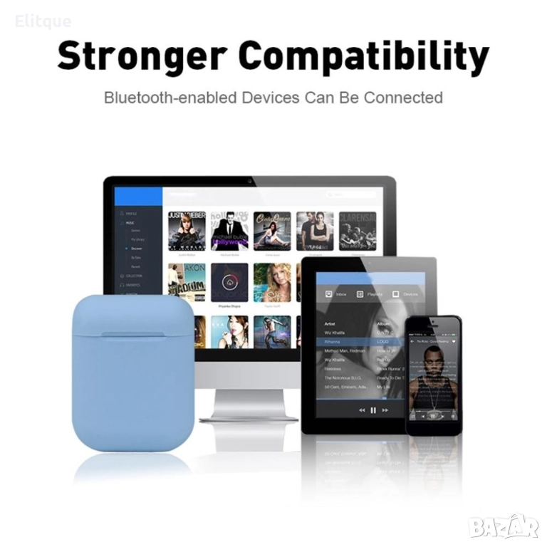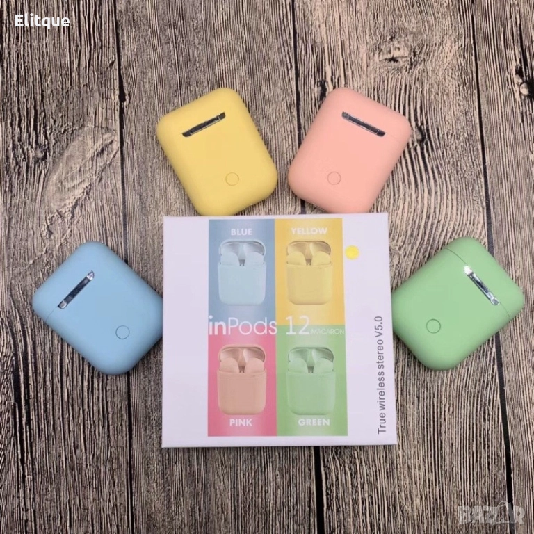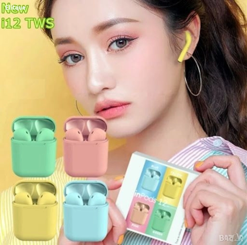 Безжични слушалки Inpods i12 TWS с цветен дизайн и управление чрез докосване