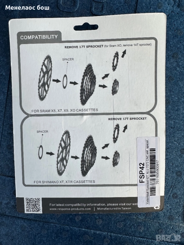 Response Ranger 42 зъба – добавъчна звезда за разширяване на диапазона на скоростите при 1x10 системи.