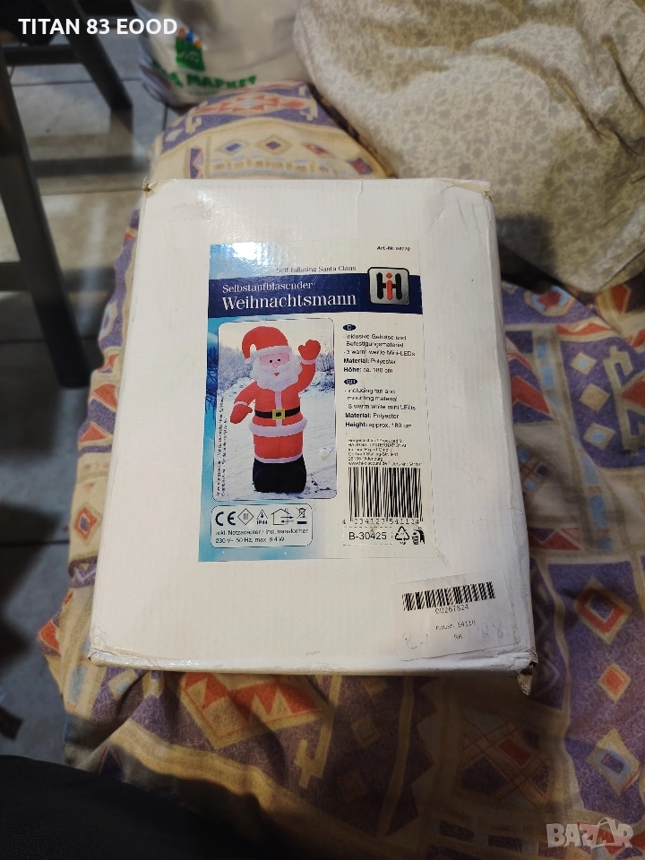 надуваем Дядо Коледа с височина 180 сантиметра е най-добрият начин да създадете уютна коледна атмосфера у дома. В разгара си, дружелюбният Дядо Коледа е в реален размер и децата, особено, ще бъдат впечатлени от вашите коледни украси. Благодарение на вградения мотор, можете да надуете Дядо Коледа за нула време и за щастие не е необходима друга досадна помпа. Включеният адаптер е сертифициран по IP44, което означава, че е водоустойчив и безопасен за употреба на открито. Освен това е лесен за настройване благодарение на четиристранните си точки за монтаж, а Дядо Коледа има бяла светлина за осветяване на интериора.