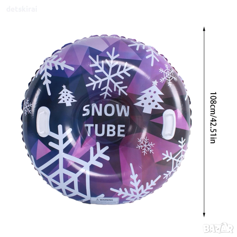 Надуваема шейна за пързаляне по сняг с двойни дръжки – идеална за зимни забавления за деца и възрастни