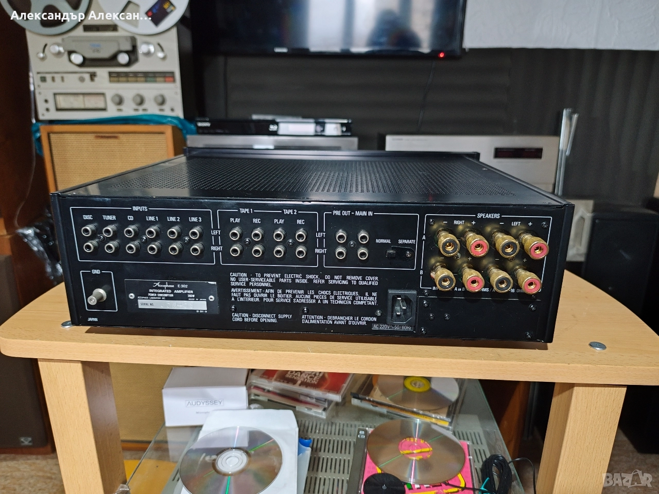 Секцията на усилвателя на мощност на E-302 е проектирана за товари с нисък импеданс, а изходният каскад Pc има голяма мощност от около 500W и използва голям трансформатор от 700VA.
