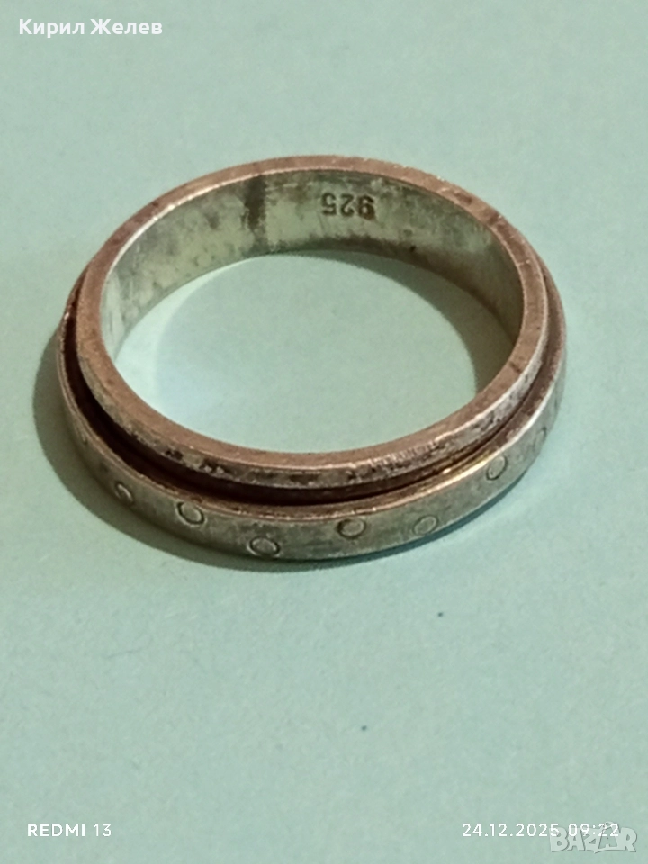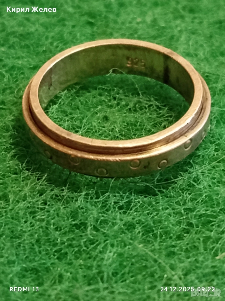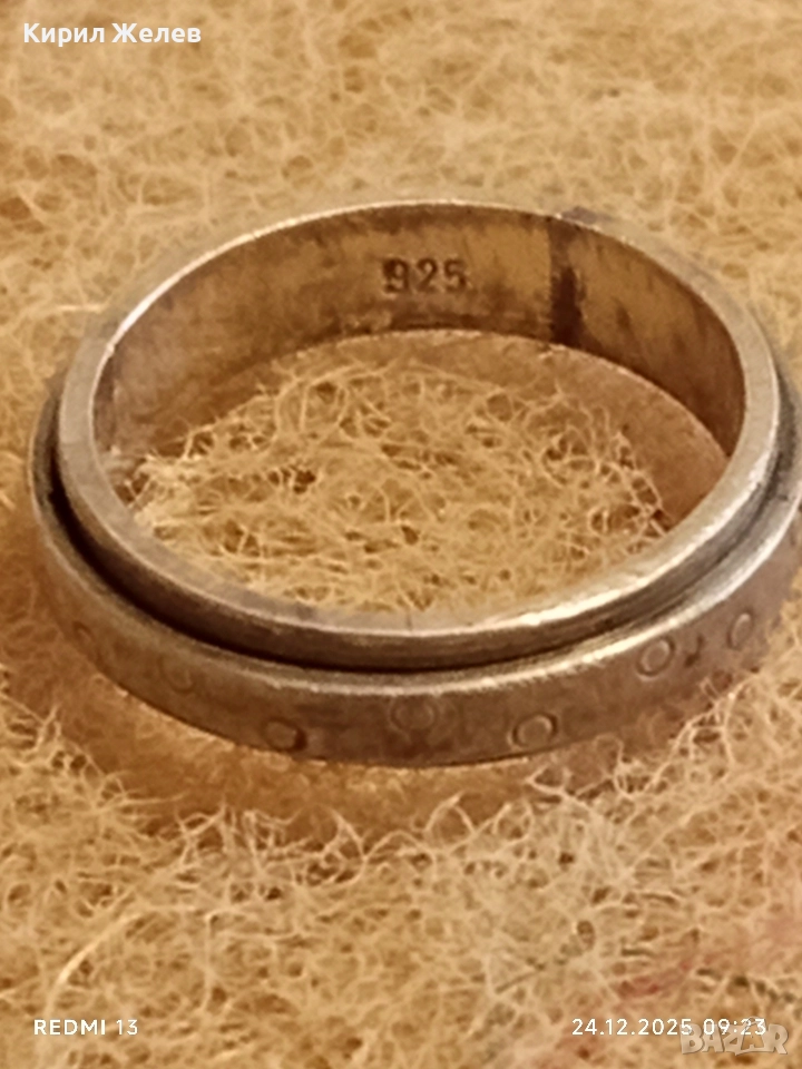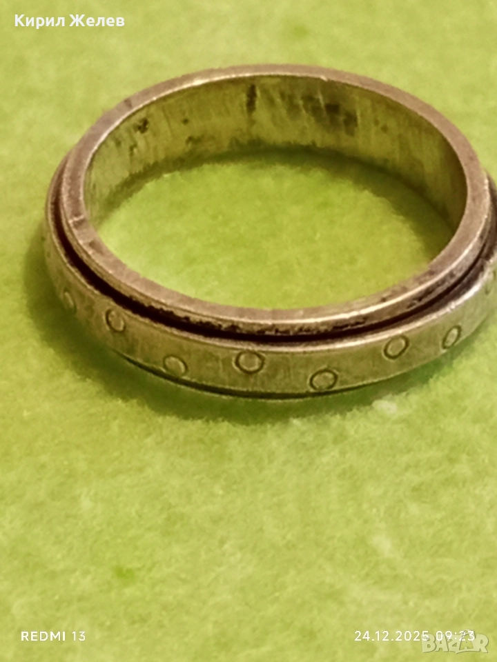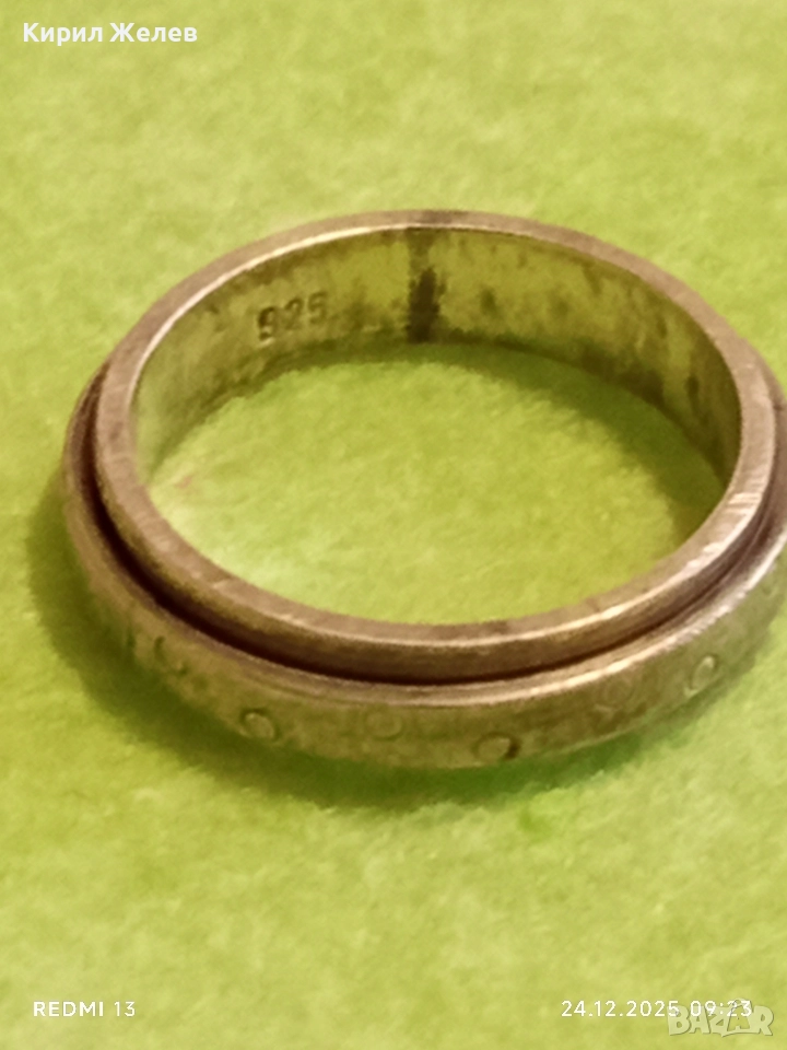 Сребърен въртящ се пръстен с точкови детайли интересен 44906