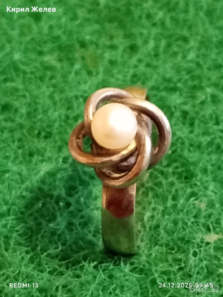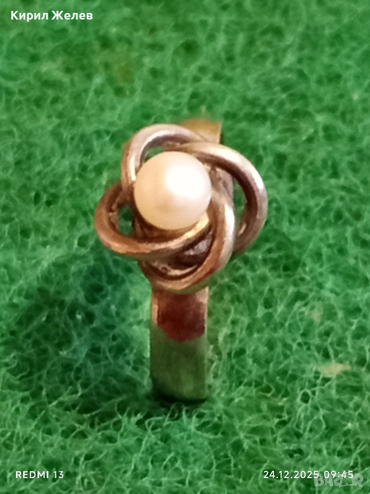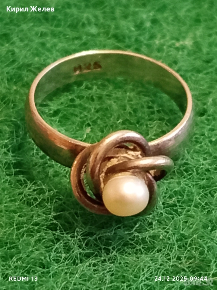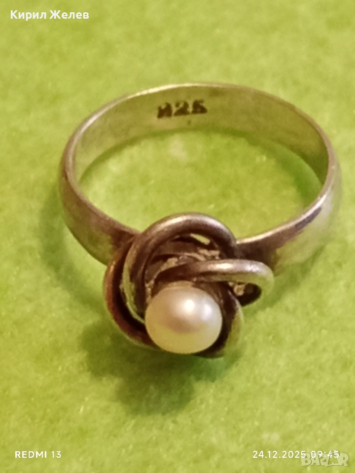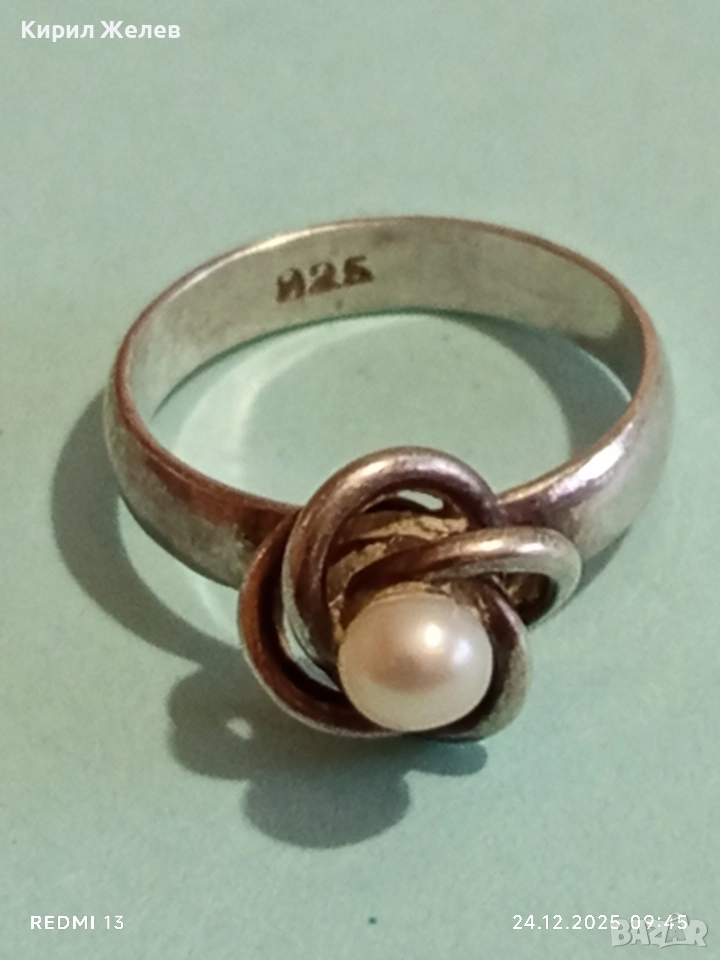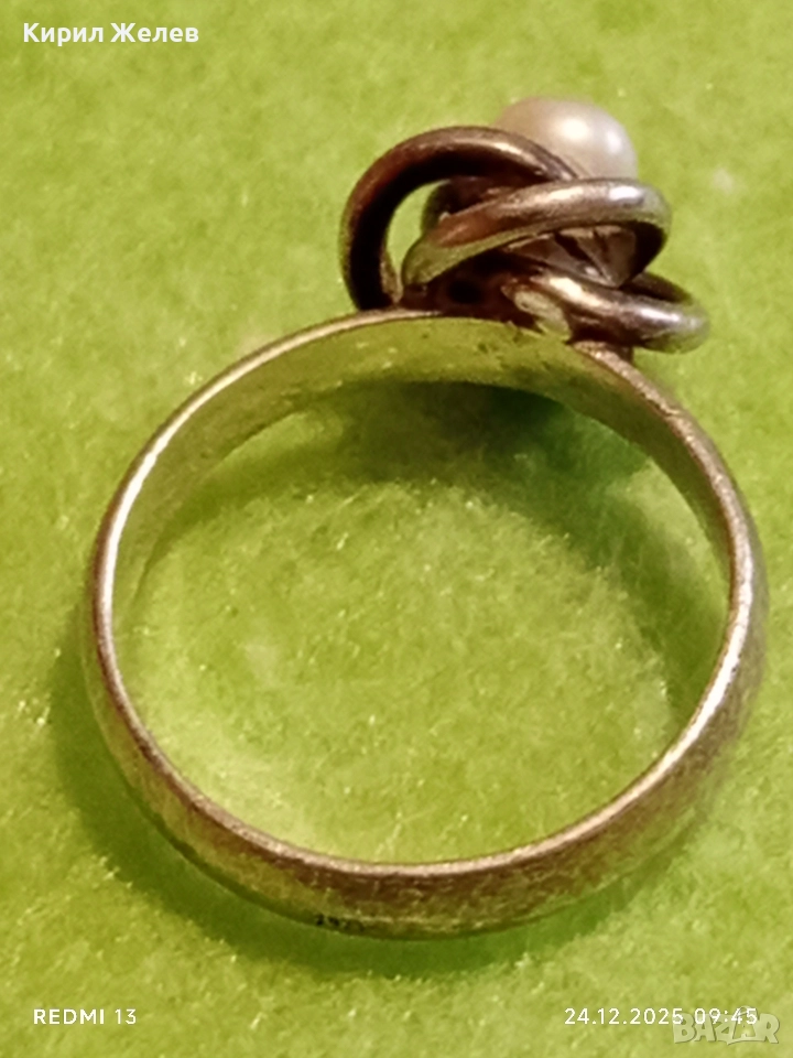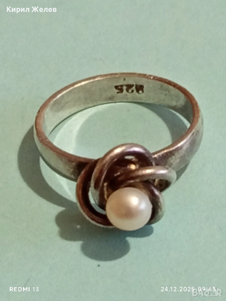 Дизайнески сребърен пръстен с ювелирно инкрустирана перла елегантен и стилен дизайн 52293