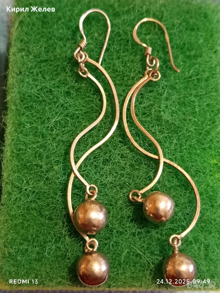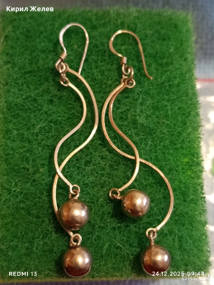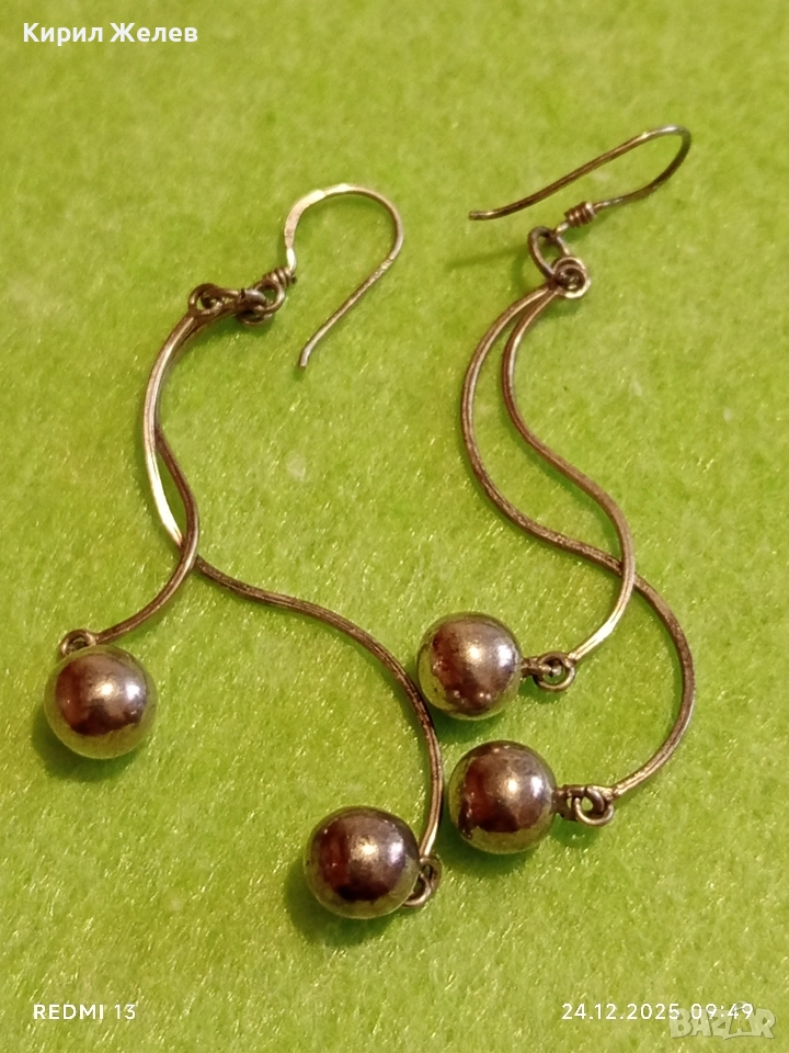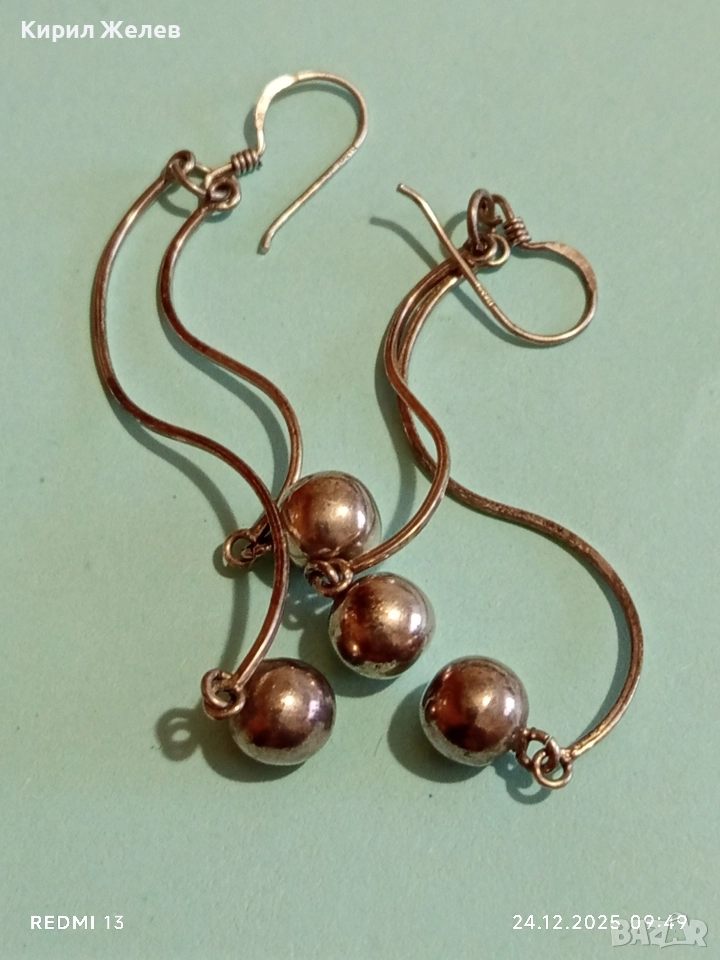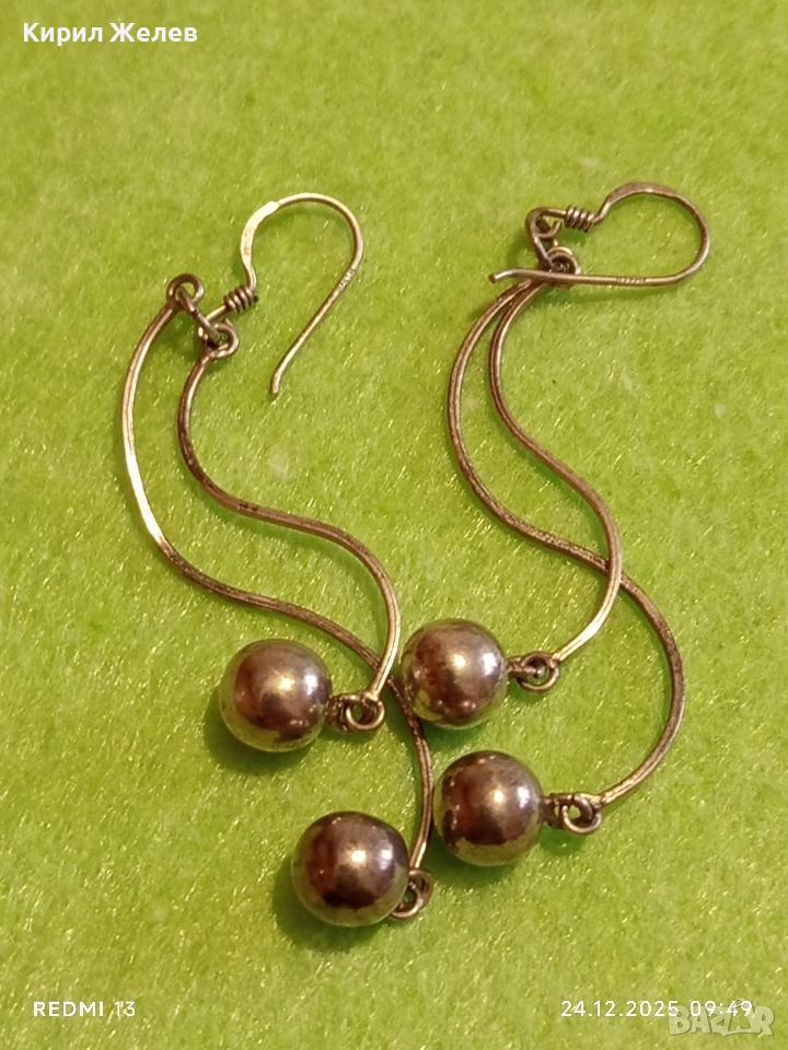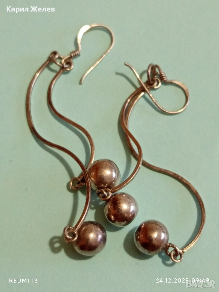 Винтидж артистични сребърни обеци с топчета майсторска изработка 32411