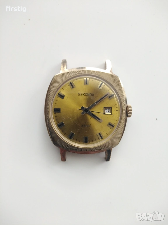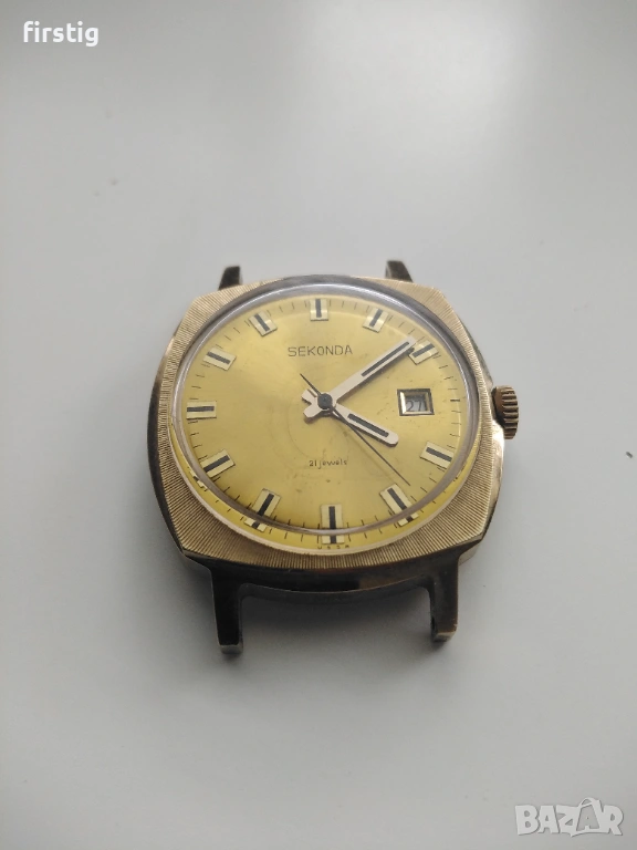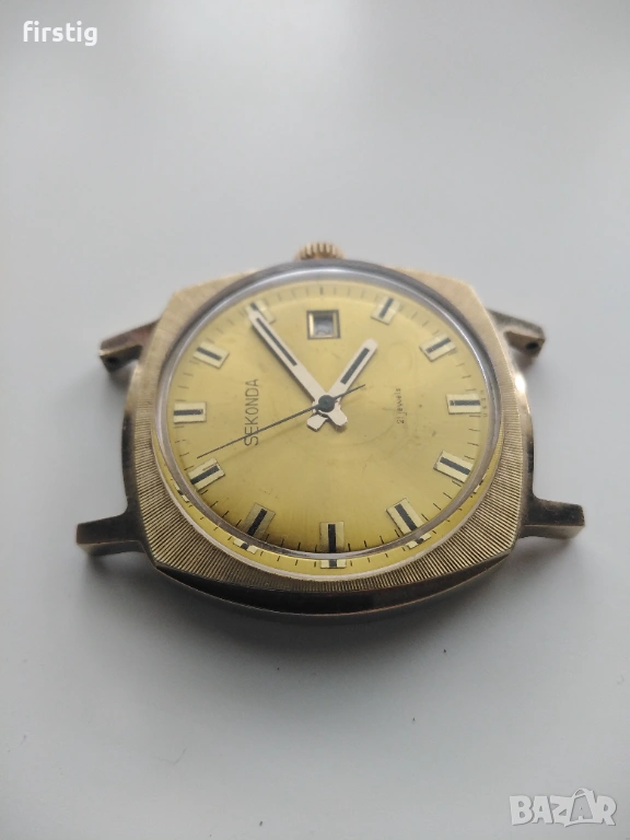 Мъжки Руски Часовник Sekonda Ракета в отлично работно състояние. Механизъм механичен ръчно навиване, позлатена каса 20 микрона в перфектно състояние, дата на 3 часа.