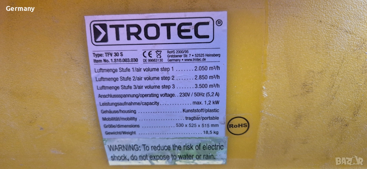 индустриялен стройтелен вентилатор trotec → Обява 52890483