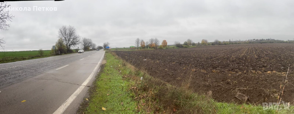 Продавам ъглов парцел, със статут на земеделска земя, на главен път Русе-Силистра и отклонението за фуражен завод(24км от Русе и 95км от Силистра).Парцелът е с две лица към главен път и отклонение за фуражен завод. Теренът е равен с площ от 9897кв м.На около 70 м преминава електропровод ,а най близкия трафопост се намира на около 150 м. от парцела.
