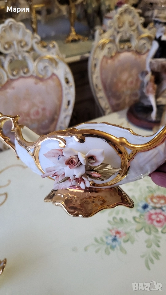 Всички части са позлатени с 24 -кратово злато,ръчно рисувани и декоративни с флорален декар.
