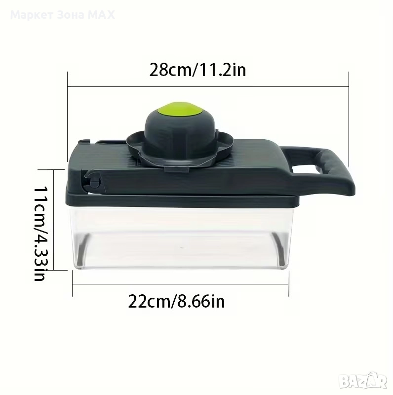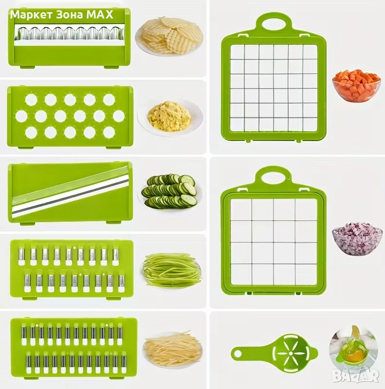 Изключително прецизен 14-в-1 кухненски чопър за бързо и лесно рязане, настъргване и наситняване на зеленчуци.