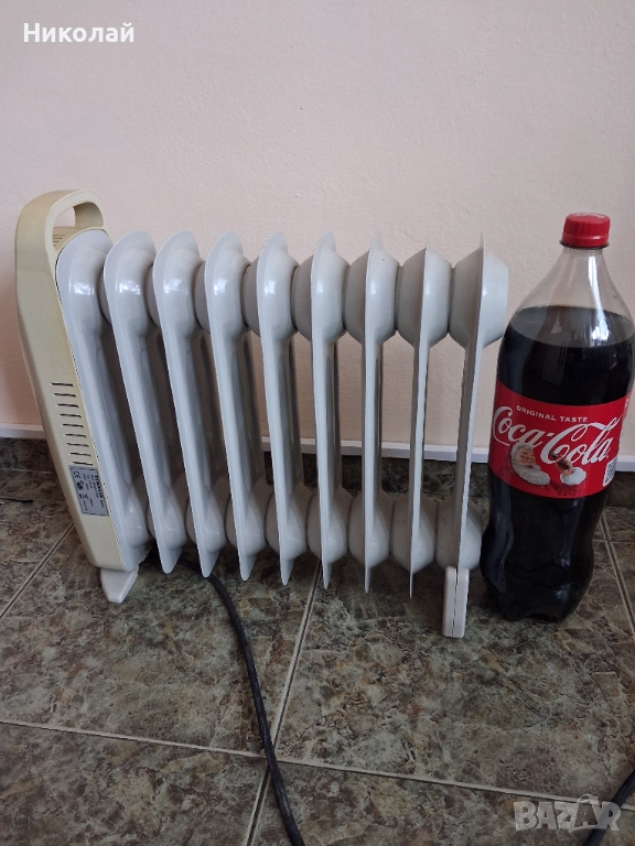 Продавам малък икономичен радиатор. Подходящ е за една стая.Бутилката е снимана за сравняване на големината.