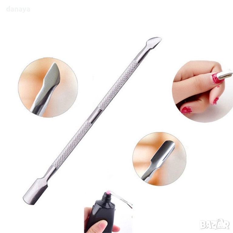 Метален избутвач за кожички за маникюр и педикюр, създаден за прецизна подготовка на ноктите и безупречен краен резултат. Ако кожичките са неравни, залепнали или около нокътя остават остатъци от гел лак, този инструмент осигурява чиста и гладка нокътна плочка още преди нанасяне на продукта.