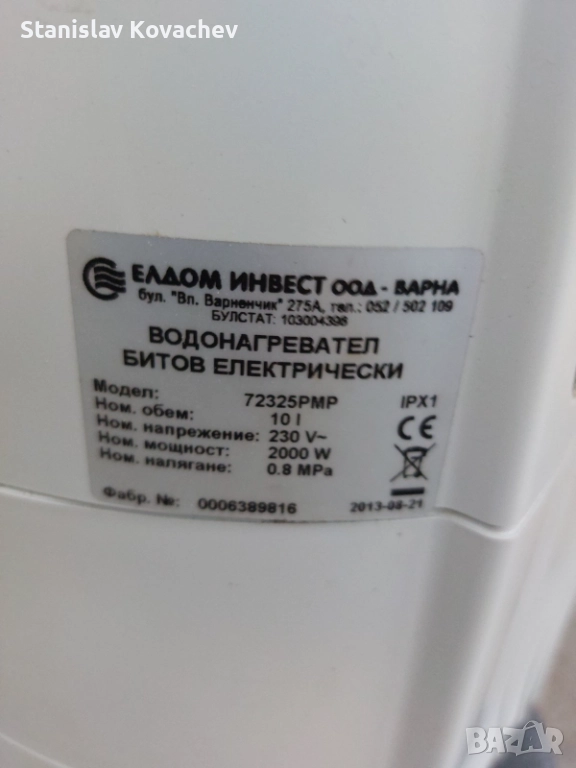Куненски бойлер , ЕЛДОМ , 10л. → Обява 52892003