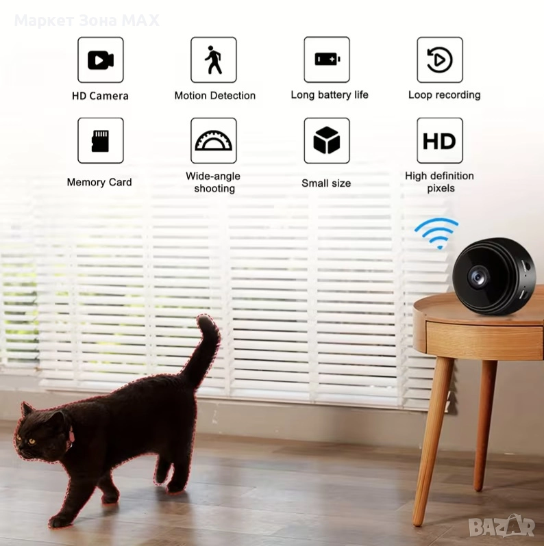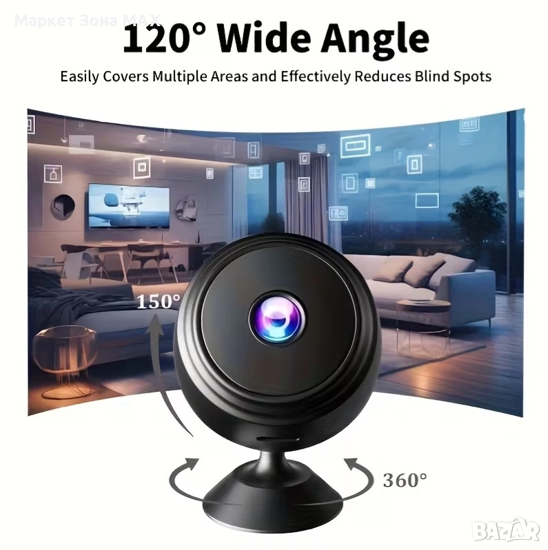 Модерна Мини безжична HD камера с Wi-Fi, нощно виждане и детекция на движение