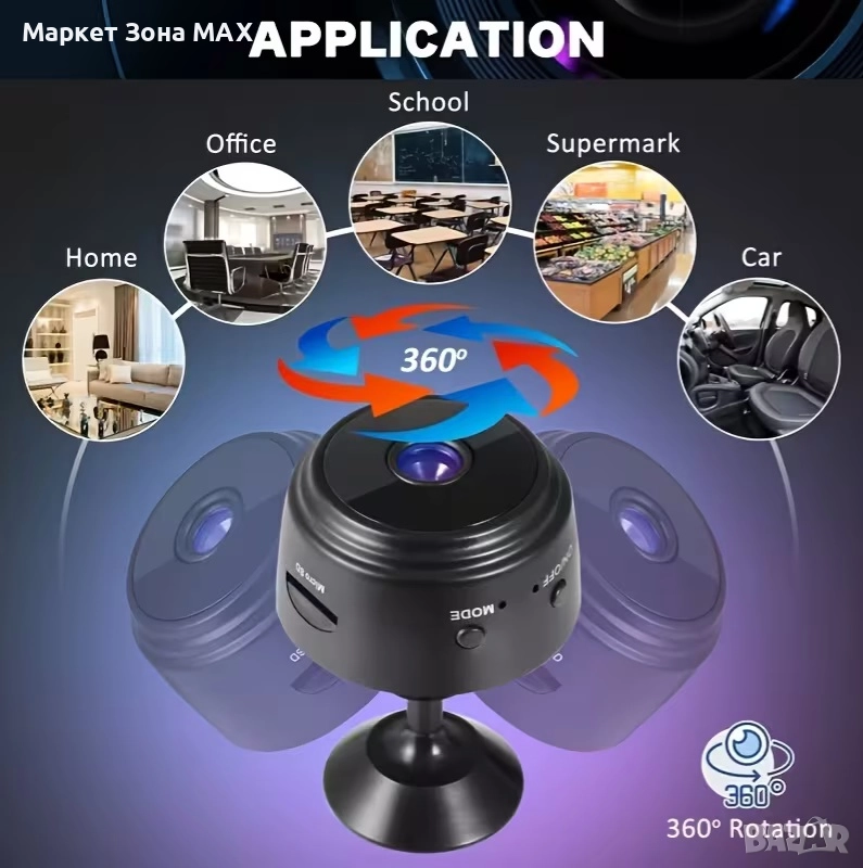 Въртящ се 360° дизайн за пълно покритие без слепи зони.