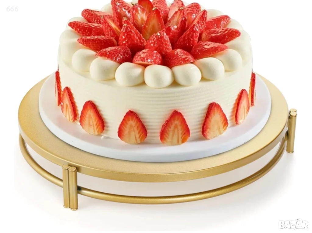 Изработена от висококачествено желязо, тя осигурява твърдост, здравина и отлична защита от ръжда. Завършена с лъскаво боядисано покритие, зашеметяващият златист цвят ще изглежда чудесно във всяка обстановка, а модерен стил се създава с метална поставка за торта.