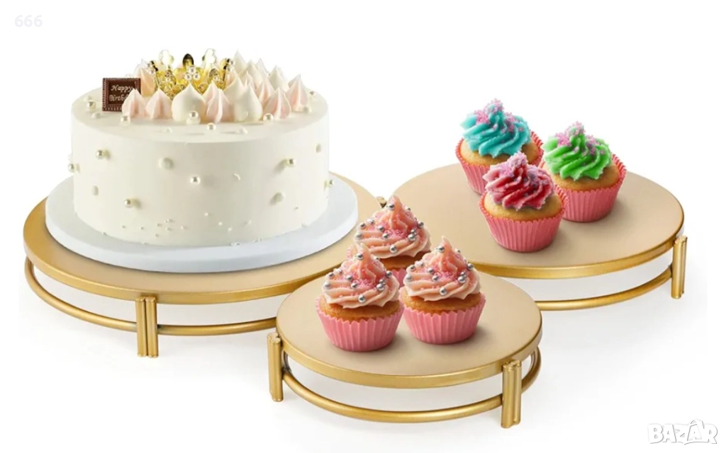 Поставките за торти Yarlung, комплект от 3 златни, са чудесни за показване на торти, мъфини, бисквитки, макарони, тарталети, сладкиши и бонбони на масата за десерти. 3 размера с диаметър: голям 11,8", среден 9,8", малък 7,8", всички с височина 2,1".