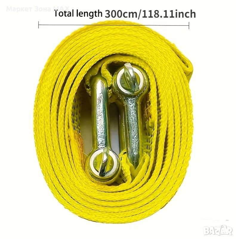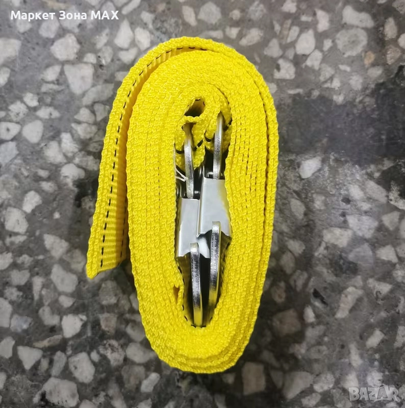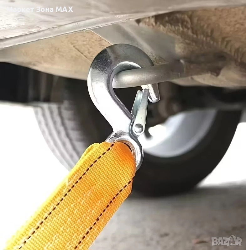 Сигурно полиамидно въже с метални куки „Орлов нокът“, подходящо за спешно изваждане на автомобили.