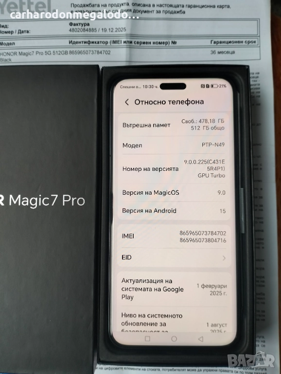 Honor Magic7 Pro 5G 512GB 12GB RAM Dual Чисто Нов 36 Месеца Гаранция.Пълен Комплект.Процесорни ядра