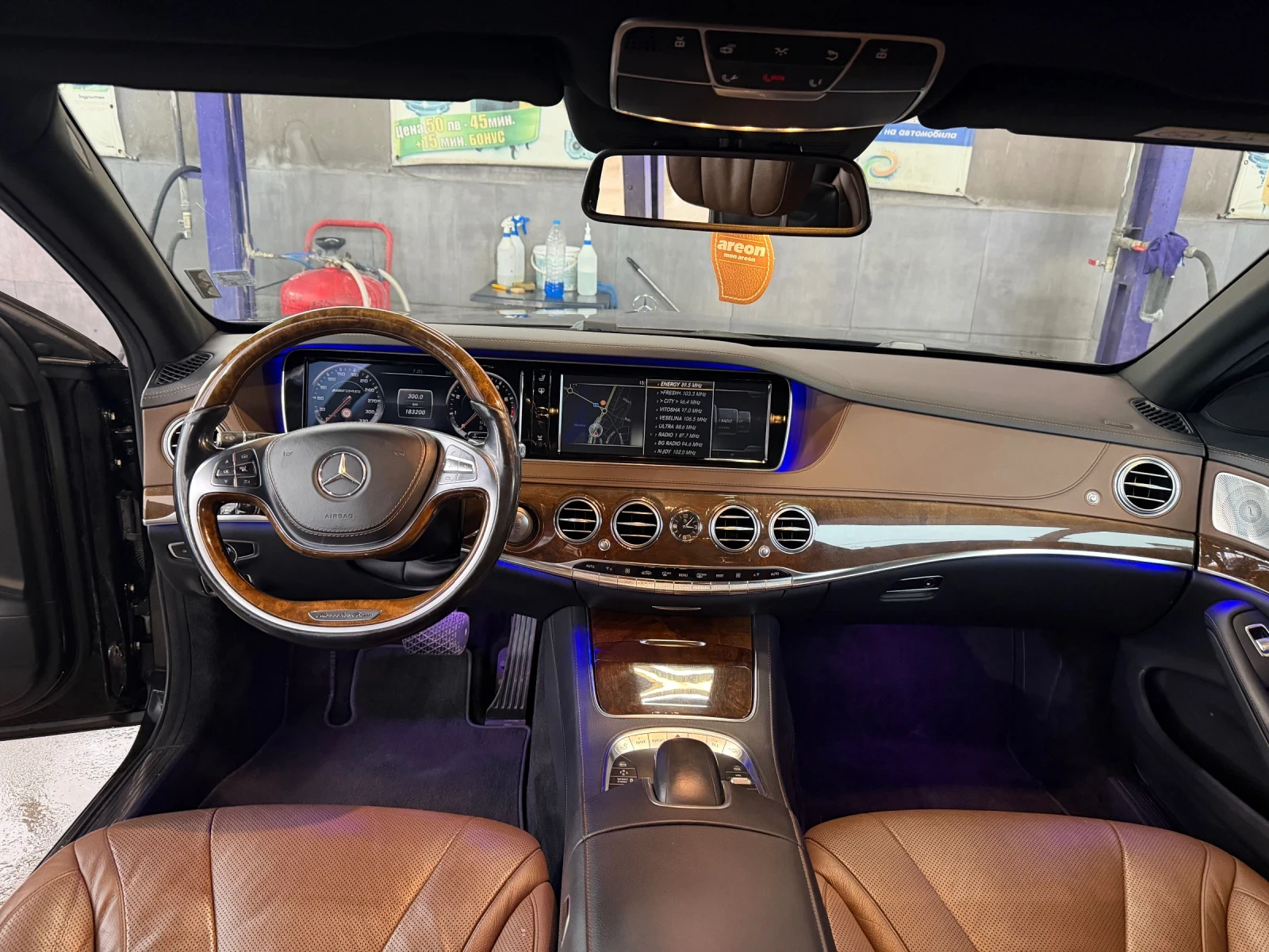 AMG оригинален пакет, подгрев и обдухване на всички седалки, ТВ за задните пасажери, всичко по автомобила е платено, дълга база, има втори комплект гуми с джанти, кара се всеки ден! Поставена КЕРАМИКА на цялата кола и напълно обслужена преди 4000 километра. Явтомобила няма нито една забележка!
