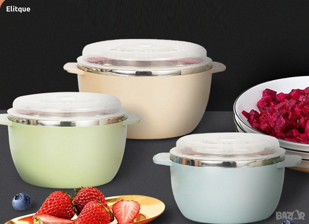 кутии за съхранение! Изработени от издръжливи материали и с герметично затваряне, тези кутии предлагат идеалното съхранение за вашите продукти. Независимо дали става въпрос за съхранение на останали ястия, закуски или приготвени храни за вкъщи или на работното място, тези кутии са незаменими помощници. Дизайнът им е удобен за стопяване в хладилника или за пренасяне на храната с вас. Стилните им цветове и форми ще допълнят всяка кухня и ще ви помогнат да организирате своите храни по елегантен начин. Тези кутии за съхранение на храна са практичният избор за всяка домакинска среда! ???