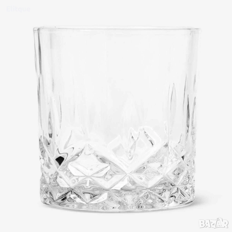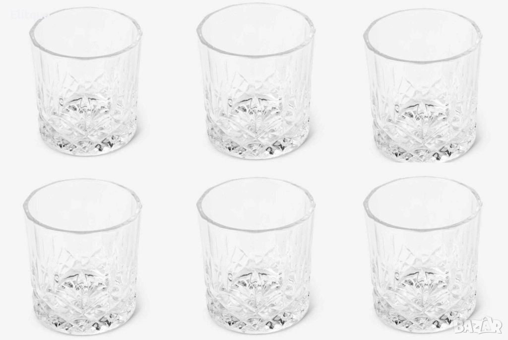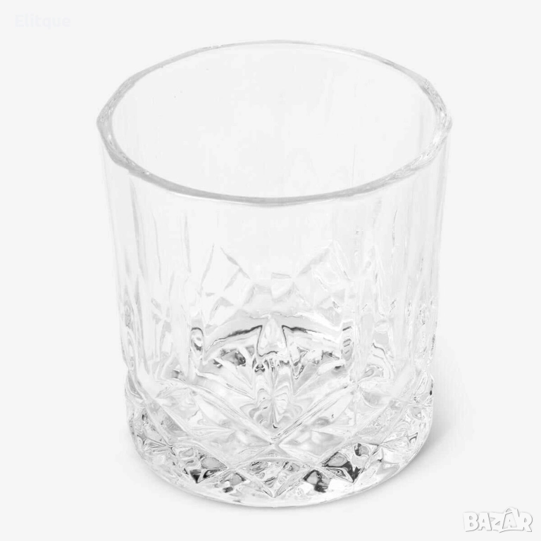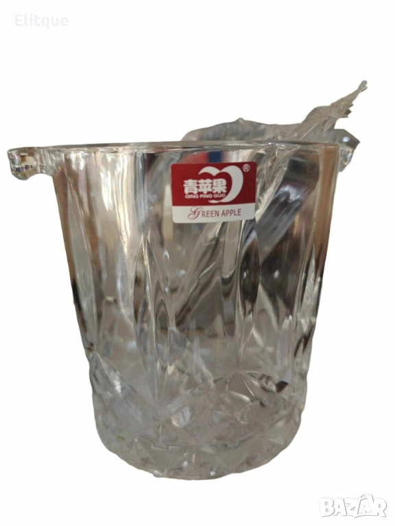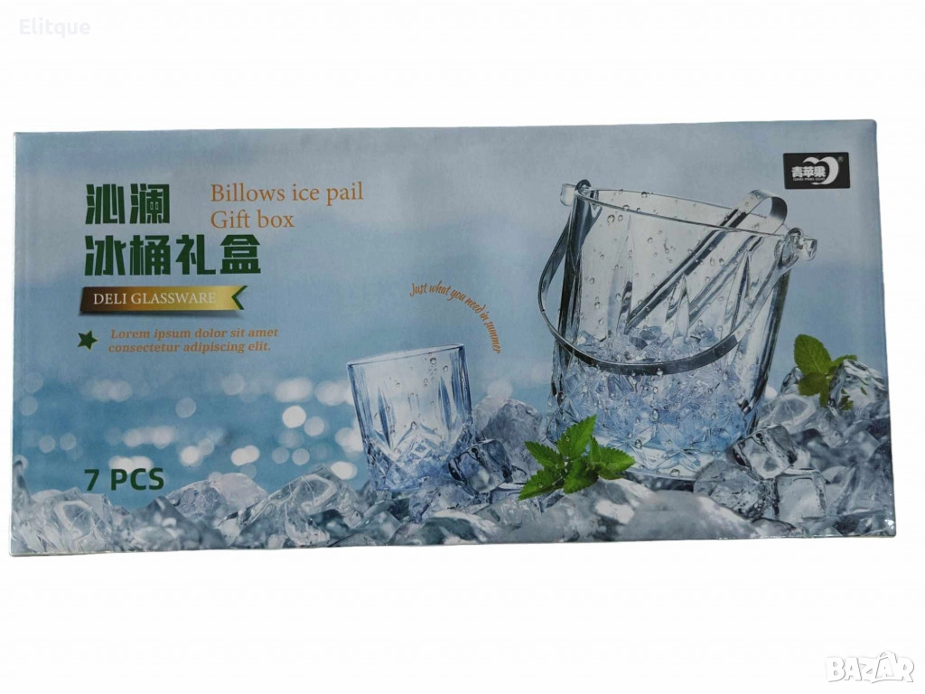 Комплект от деликатно стъкло,6 чаши и купа за лед с удобни щипки
