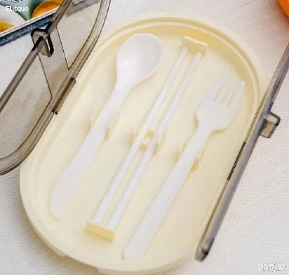 Преносима пластмасова кутия за храна на 2 нива