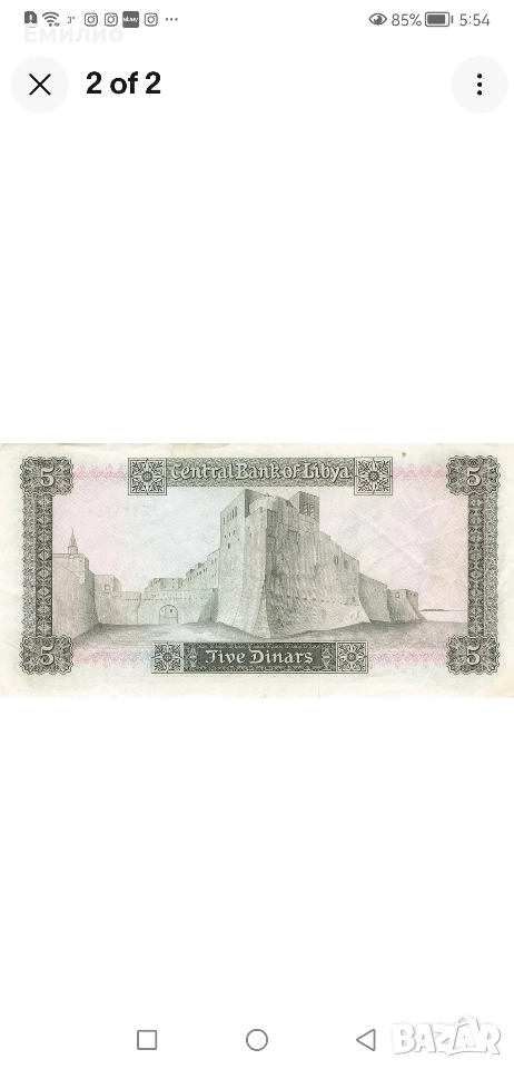Продавам Рядка банкнота от Либия. 5 Динара от 1972 год. Много добре запазена банкнота. XF