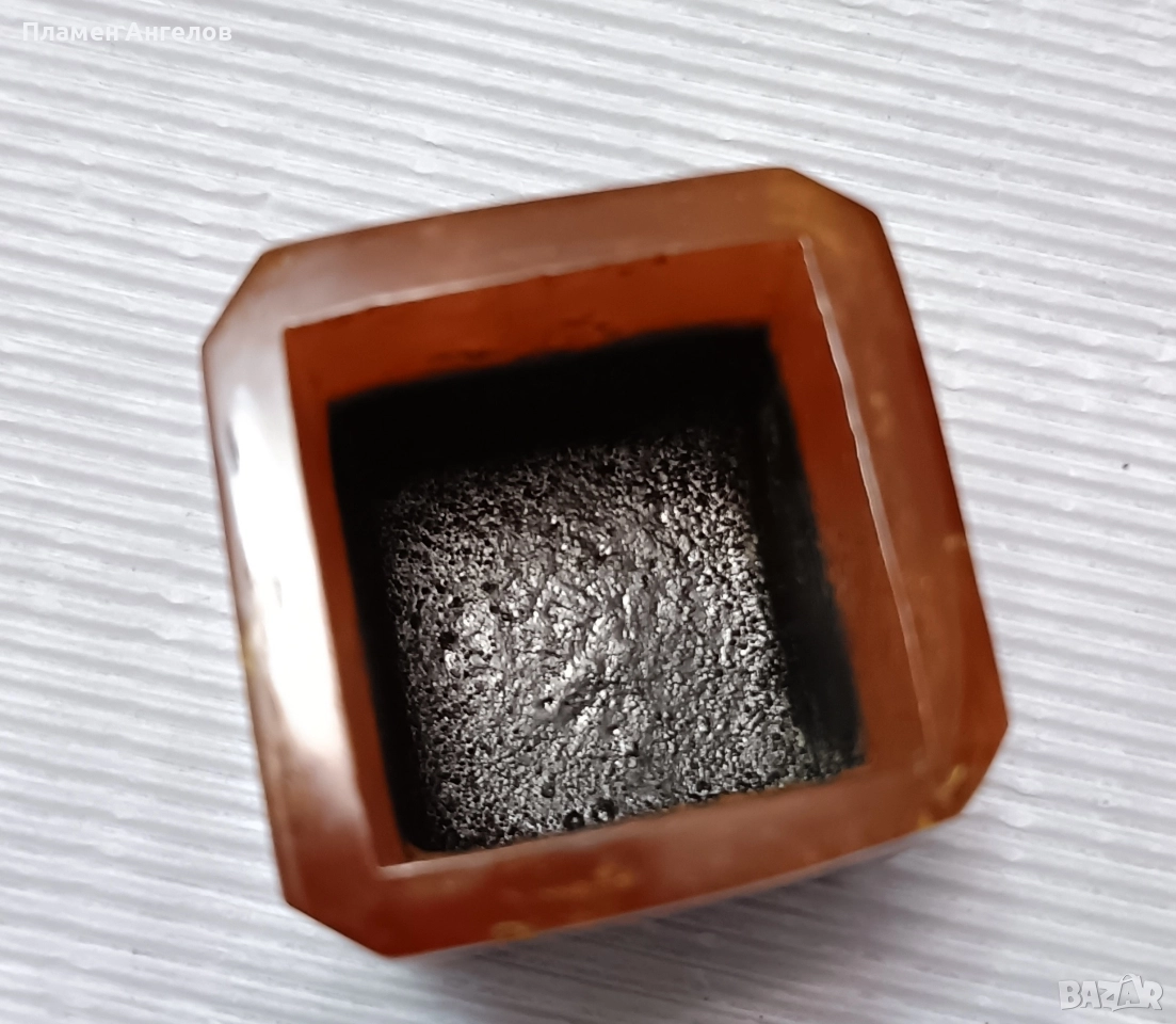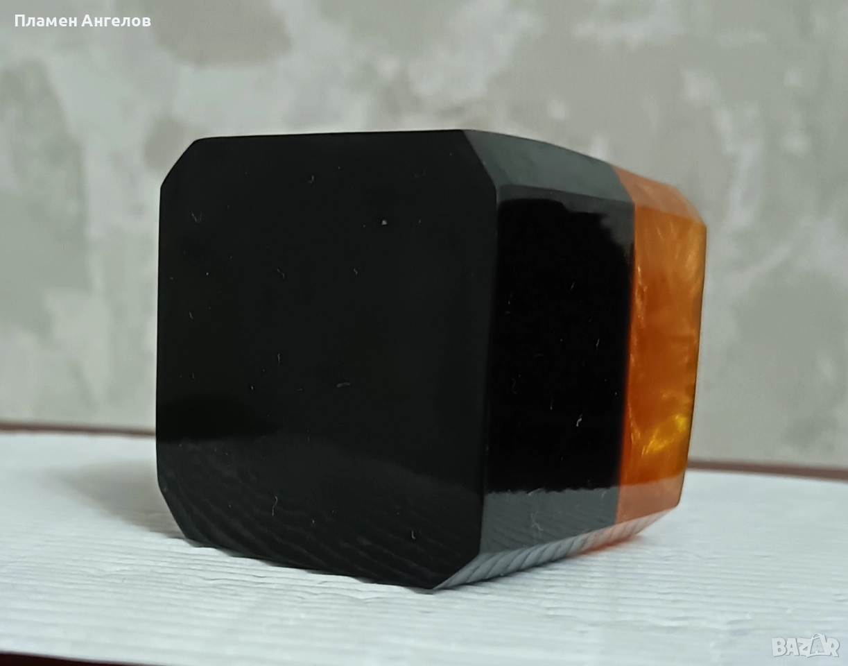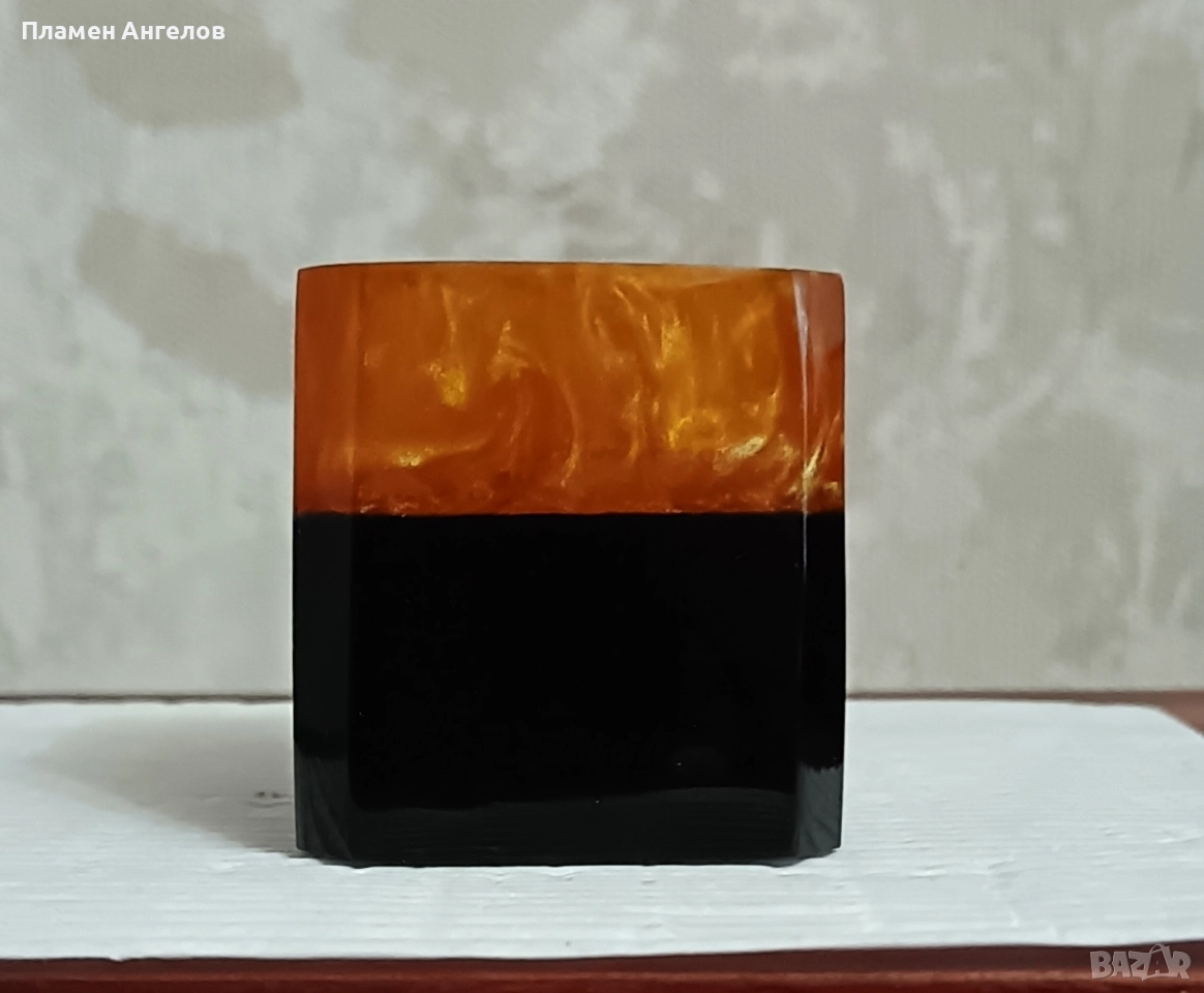Винтидж моливник от Каталин, Бакелит от 70те години на миналия век. Кехлибарен Лава Поток. Каталин, Бакелит. Декор, интериор. Арт Деко. Височина 5.5см.Запазен,без повреди, в отлично състояние. Производство на "Русенска комуна". Рядко срещан, черният материал е в долната страна. Търсех в ин. пространството, не намерих подобен.