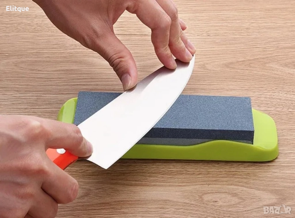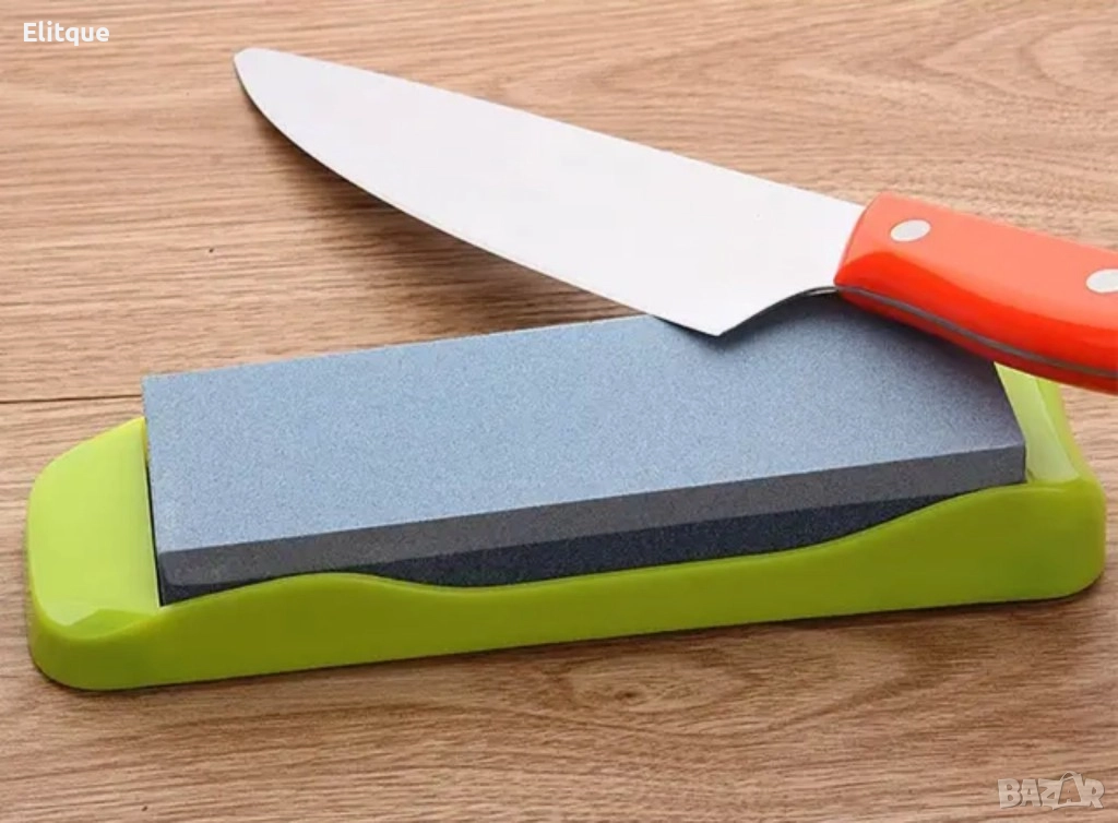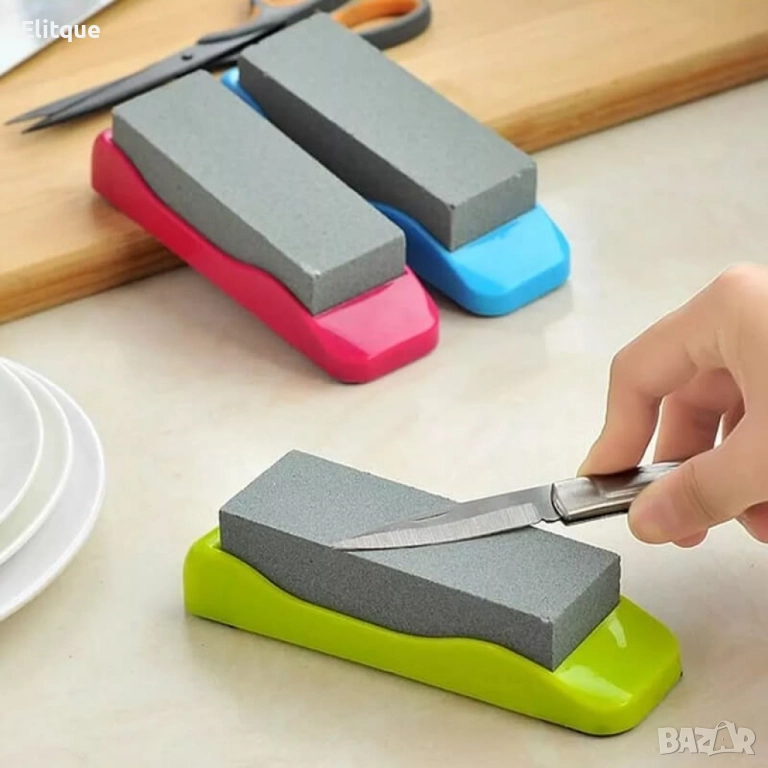Каменно точило. Цвят: според наличността в склада; Лесно за употреба точило, подходящо за всякакъв вид ножове - джобни, ловни, риболовни и кухненски ножове, инструменти с различни размери. Само с няколко движения ще имате перфектно остър нож, бързо и лесно. Каменно точило Компактен дизайн. Лесен за използване и съхраняване. Безопасно за работа. Ергономична гумена основа. Подходящ за всички видове ножове. Размери: 20 х 5,5 х 4 см