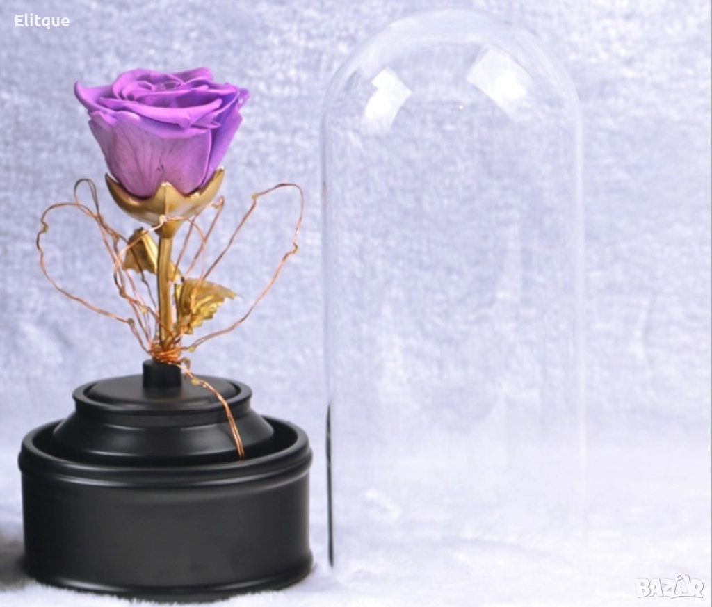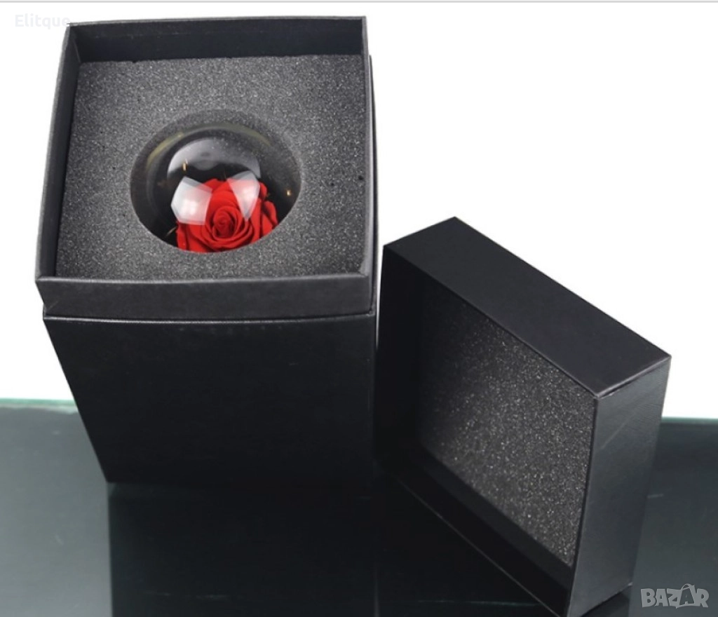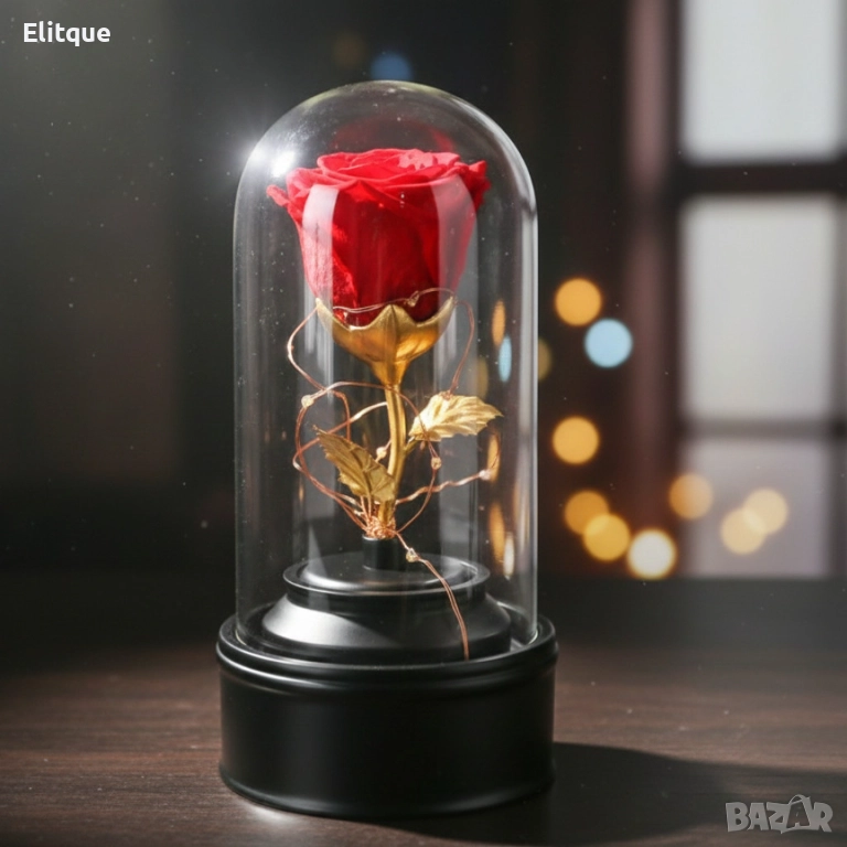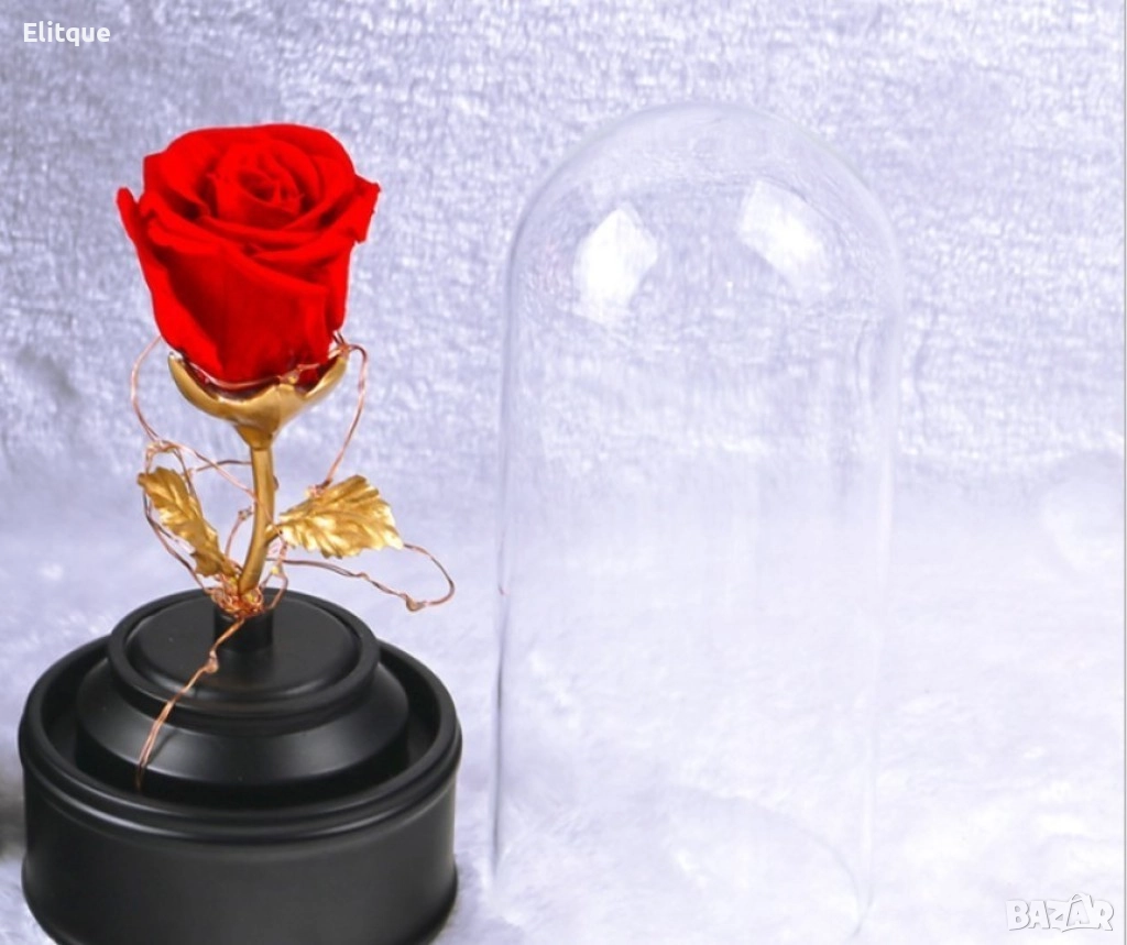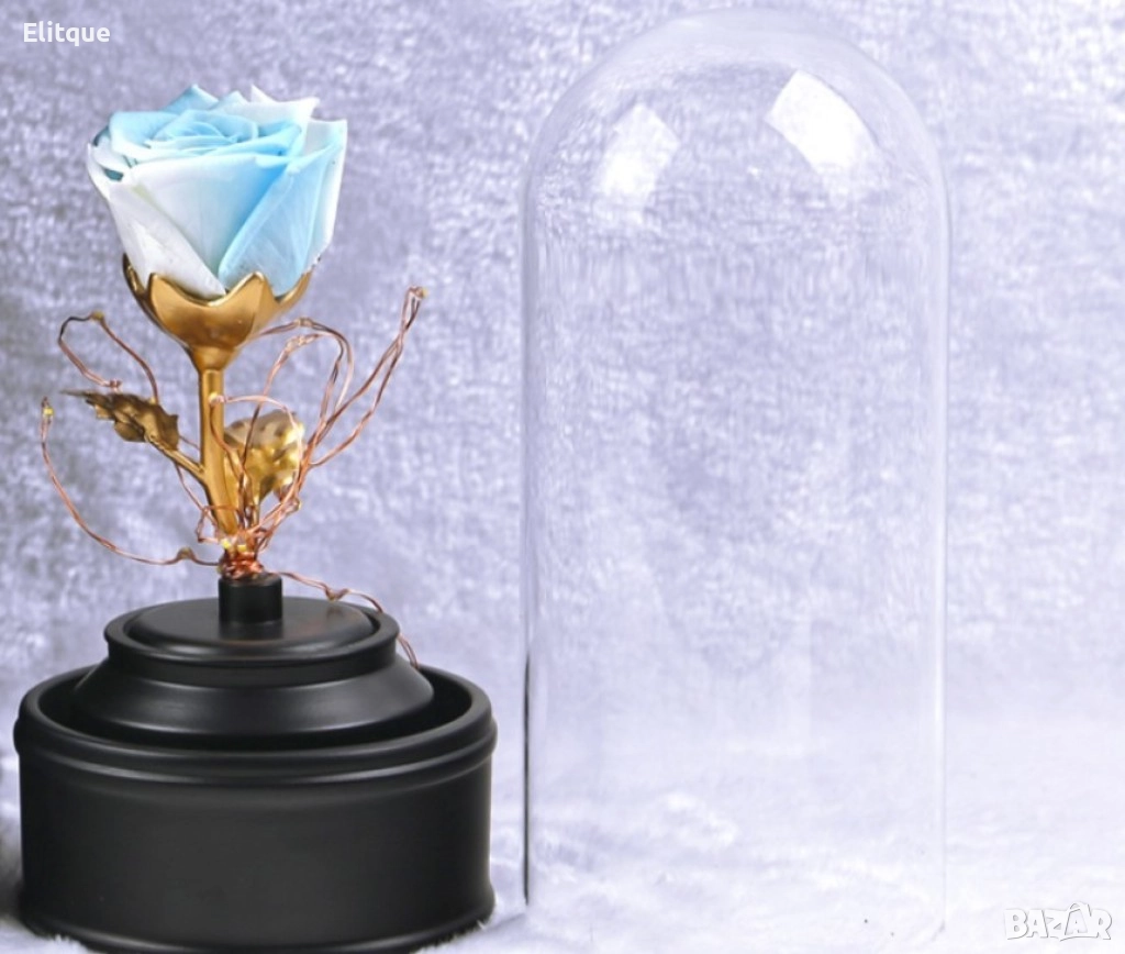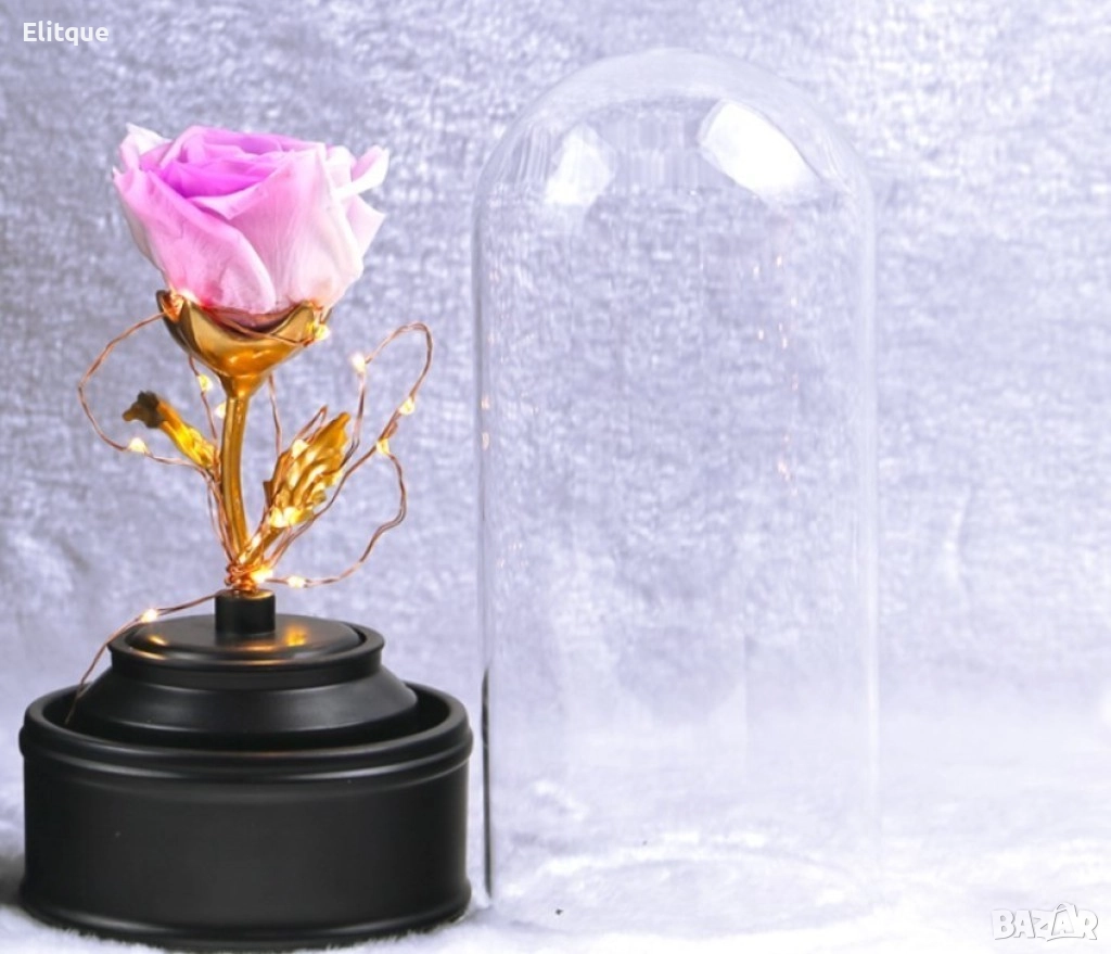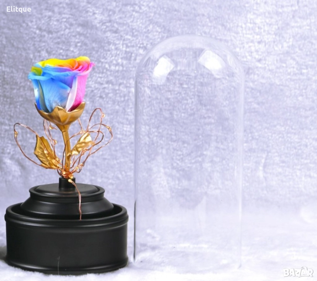 Вълшебна неувяхваща роза в стъкленица с LED светлина. Размер: 8.5 х 18 см; Размер на кутия: 16 х 16 х 26 см; Нетно тегло: 600 гр; Захранване: Батерии; Тегло с кутия: 1200 гр. Варианти - розова, червена или синя.