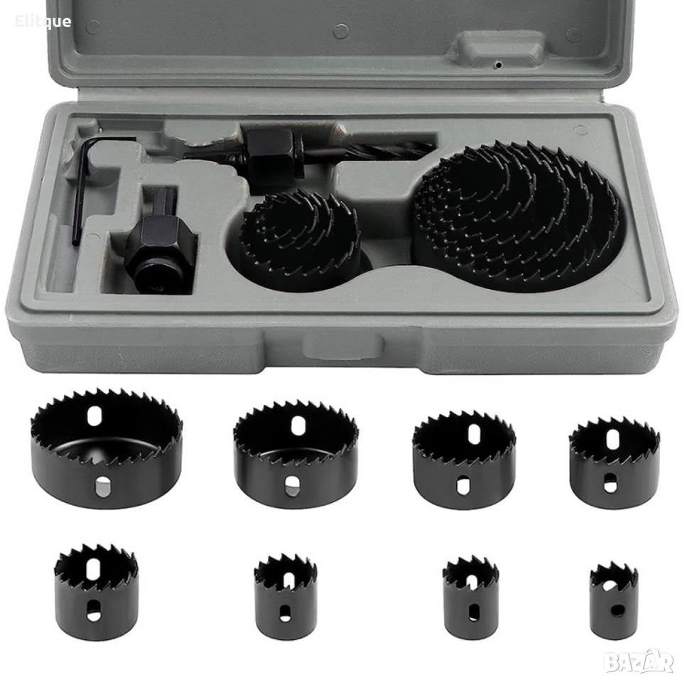 Продукт е комплект триони за дупки, включващ различни размери от 19 mm до 127 mm, идеален за работа с PVC панели, меко дърво и други подобни материали. включва 16 части: 119, 22, 29, 32, 38, 44, 51, 64, 76, 89, 102, 127 мм, 1x дорник,,,1 x шестограмен ключ, 1 x спирална бормашина, 1x инсталационна плоча за кутия и кутия за съхранение с шестограмен ключ.