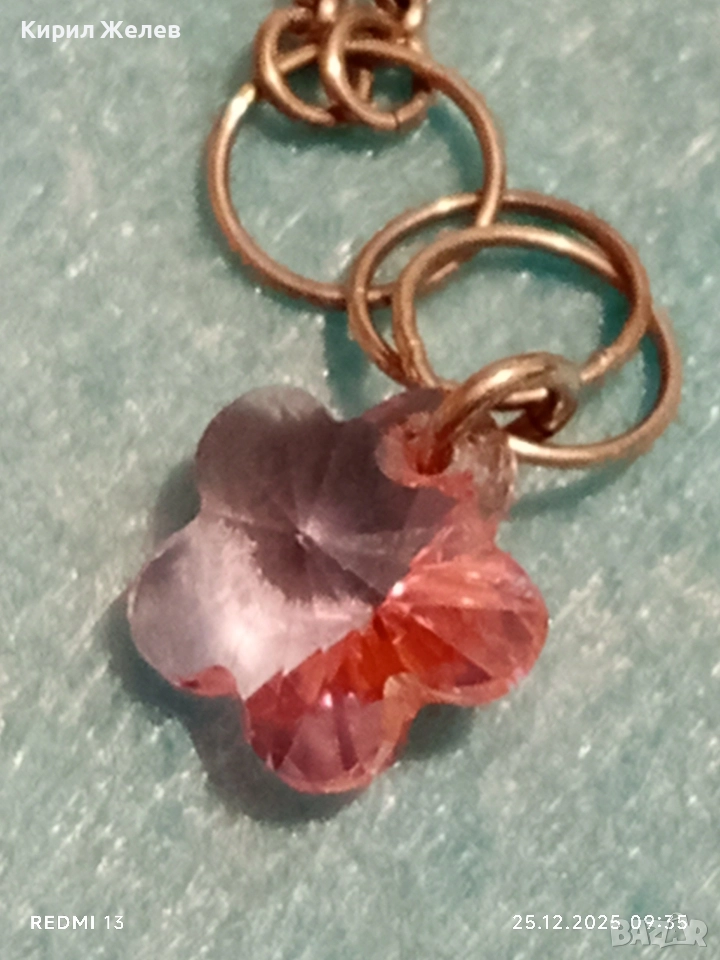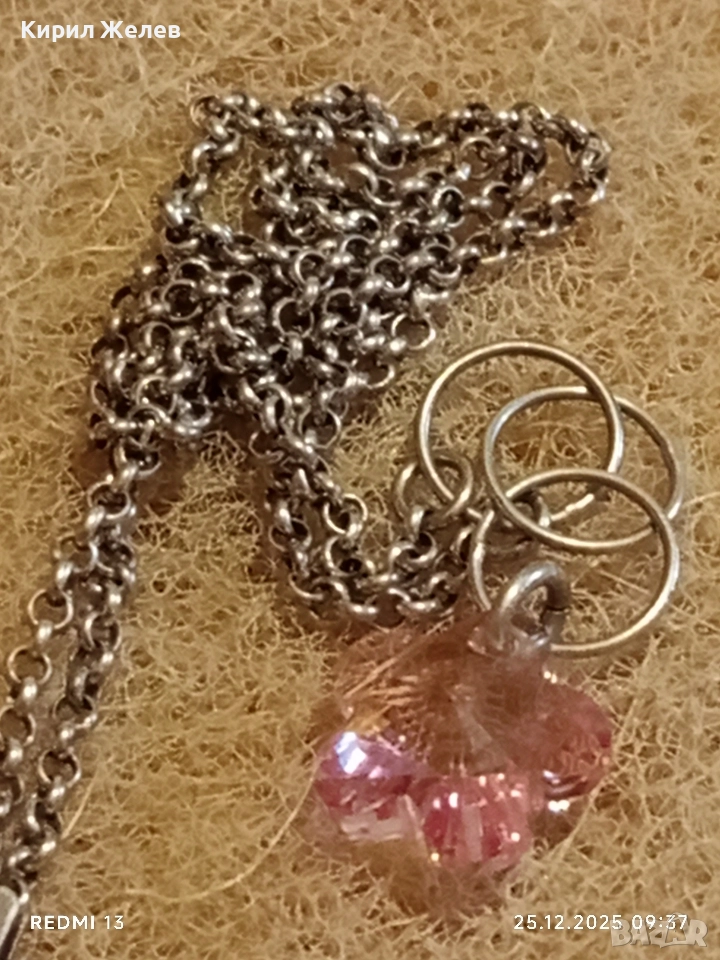 Сребърно колие бохо стил с флорален мотив РОЗОВ КВАРЦ елегантен дизайн 50986