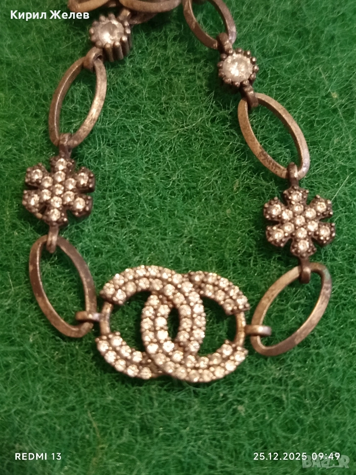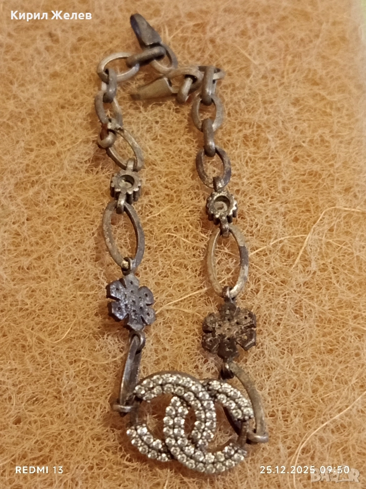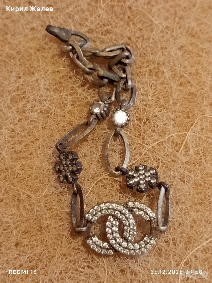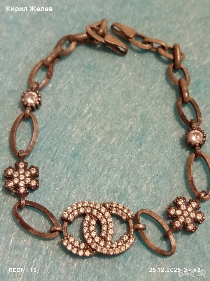 Сребърна гривна с логото на Chanel инкрустирани кристали 40200