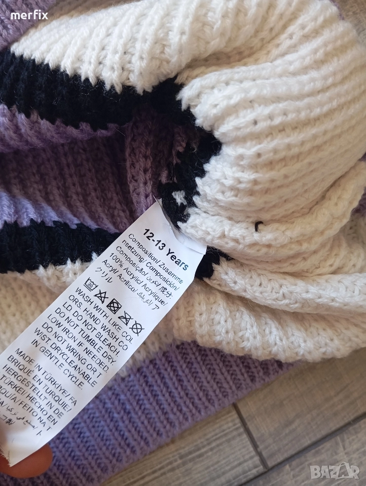Пуловерите са нови и детски със размери 9-10г, 10-11г, 11-12г, 12-13г, 13-14г, 14г. Но стават и за дамски защото са широки като модел и къси, могат да се носят с висока талия дънки та и панталони. Отговарят на размер ХС, С, М.