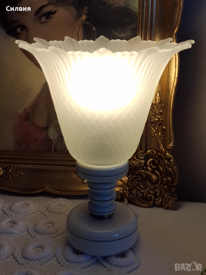 Винтидж нощна лампа с матирано стъкло – елегантен