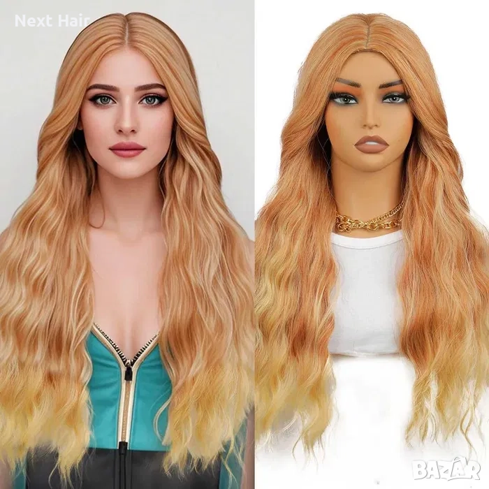 Оранжева къдрева перука с руси краища на път → Обява 52896203