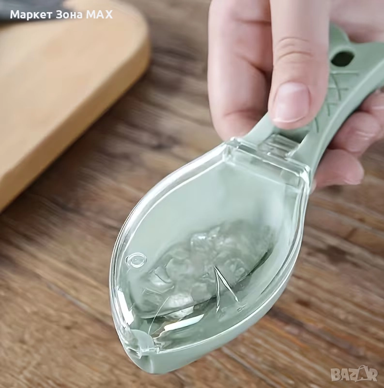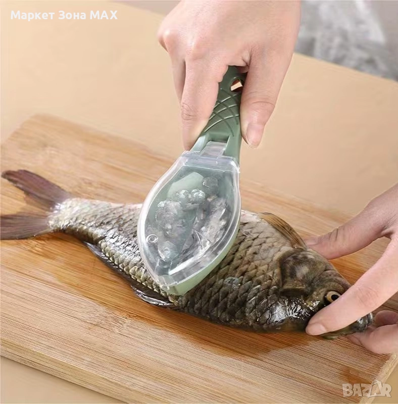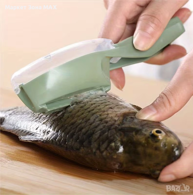 Пластмасов обелвач за рибени люспи с метални ножчета – лесен и безопасен инструмент за почистване на риба.