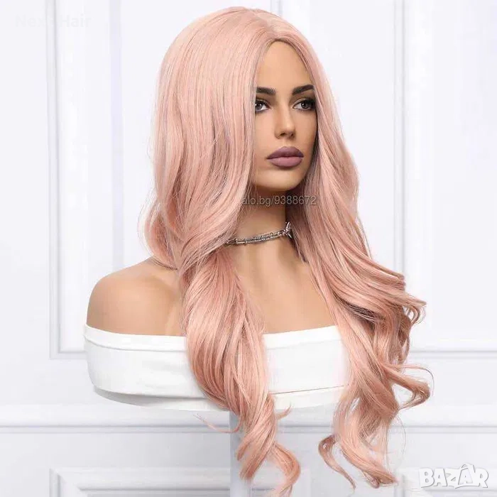 Добави цвят и стил към визията си с тази елегантна розова вълнообразна перука с нежен път. Перуката е изработена от висококачествени синтетични влакна, които имитират естествената структура и блясък на истинската коса. Леката и удобна основа осигурява стабилно прилягане и комфорт при продължително носене, без да утежнява.