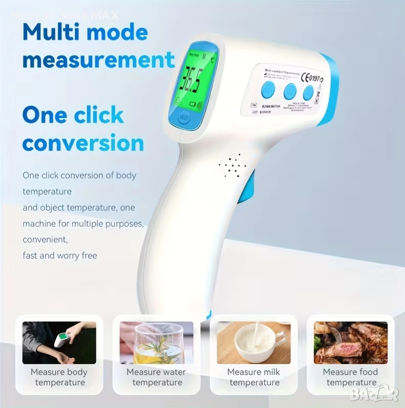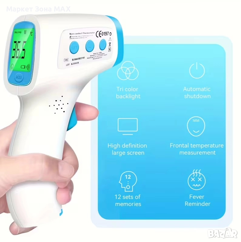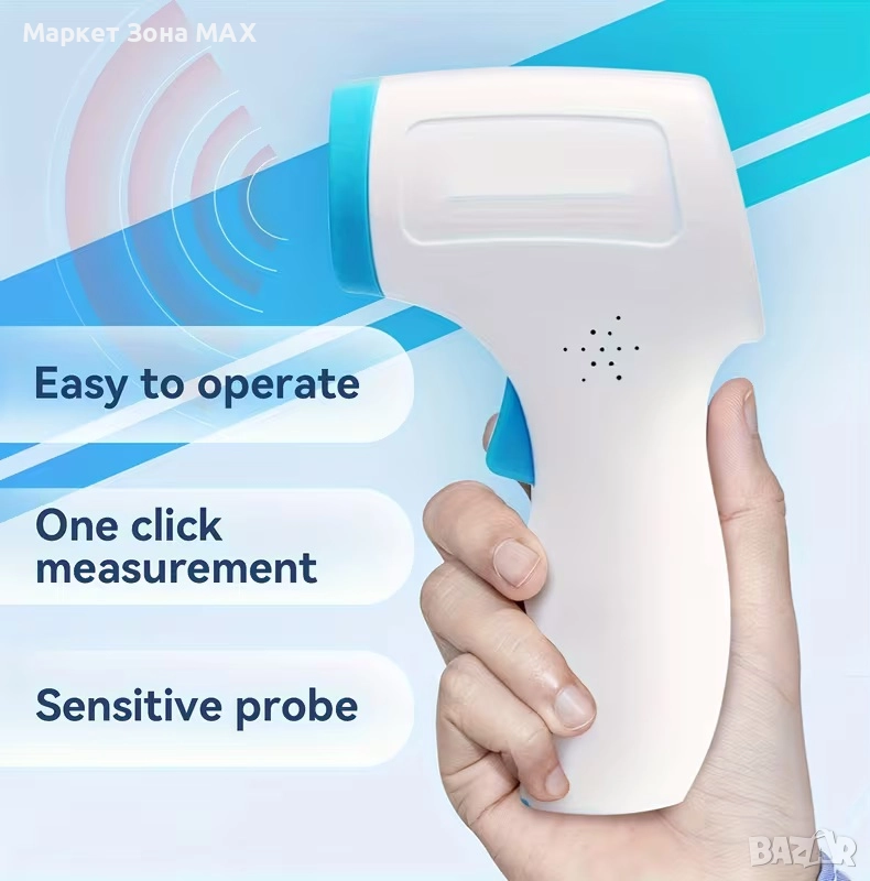 Измерва бързо и точно температурата на челото на възрастни и деца (от 32°C до 43°C).