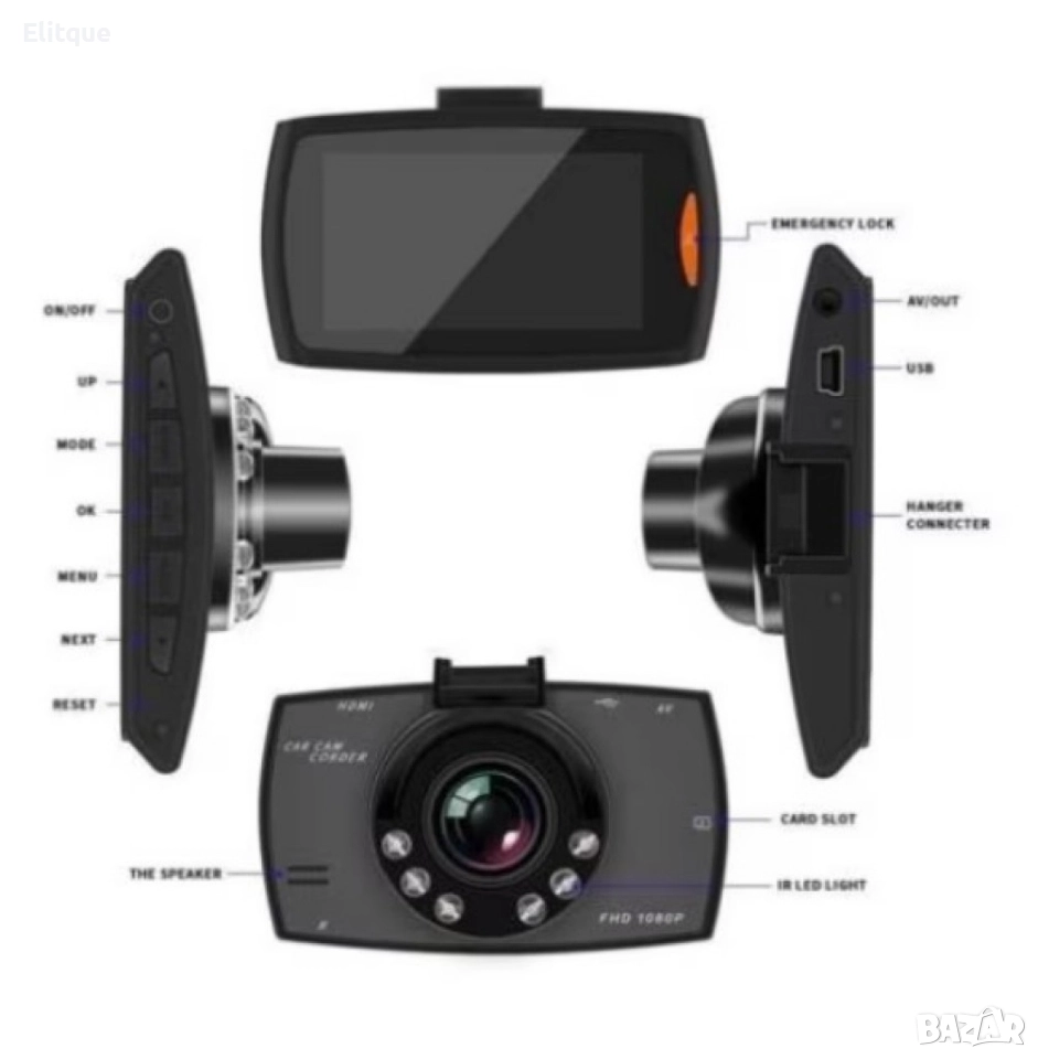 Full HD оптика (запис на AVI филми с качество); Резервна батерия; 2,7-инчов LCD екран; Полско меню; Режим на нощен запис; Сензор за движение; Индикатор за дата и час; Вграден микрофон и високоговорител; Способността да правите снимки; Нощен режим (6 инфрачервени диода); Детектиране на движение; Запис на контур; Бутон за заключване; Устройството поддържа microSD карта с памет до 32 GB; Захранване - запалка за кола 12 V / 24 V; USB порт: Mini-USB2.0; Размер на видеото: 1080p(1920*1080)/720p(1280*720)/(640*480); Видео формат: AVI; Работи с включено запалване; Поддържа карти памет: Micro SD (max32gb); Вградена батерия: 3.7V LI 300mAh; Размери: 8.6 x 4.6 x 1.2 см.; Гаранция: 12 месеца.