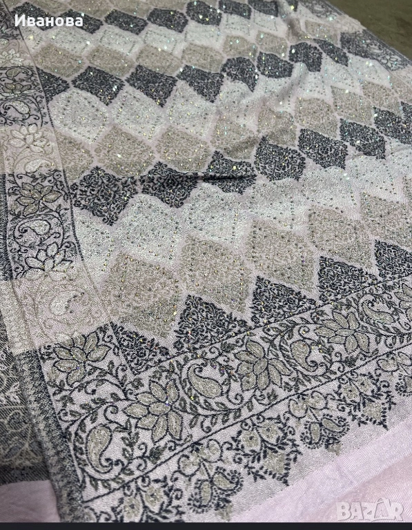 Голям кашмирени шал с кристали, снимка 1 - Други - 52896563 Голям кашмирени шал с кристали, снимка 2 - Други - 52896563 Голям кашмирени шал с кристали, снимка 3 - Други - 52896563 Голям кашмирени шал с кристали, снимка 4 - Други - 52896563 1/4