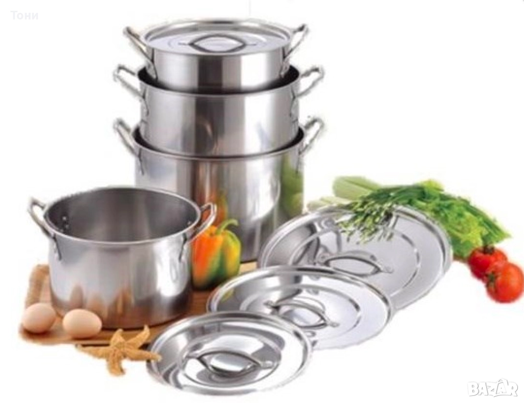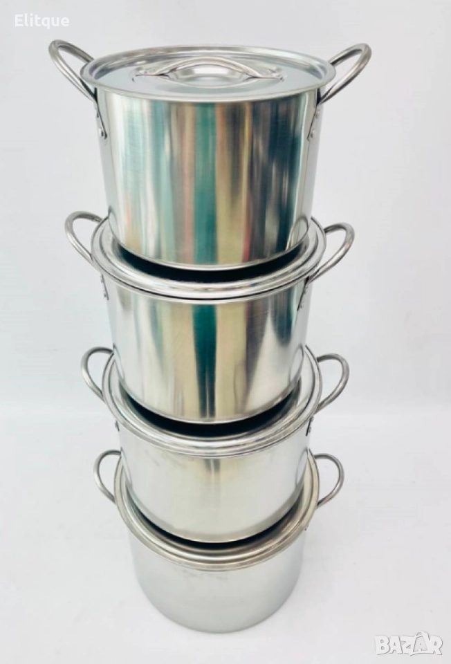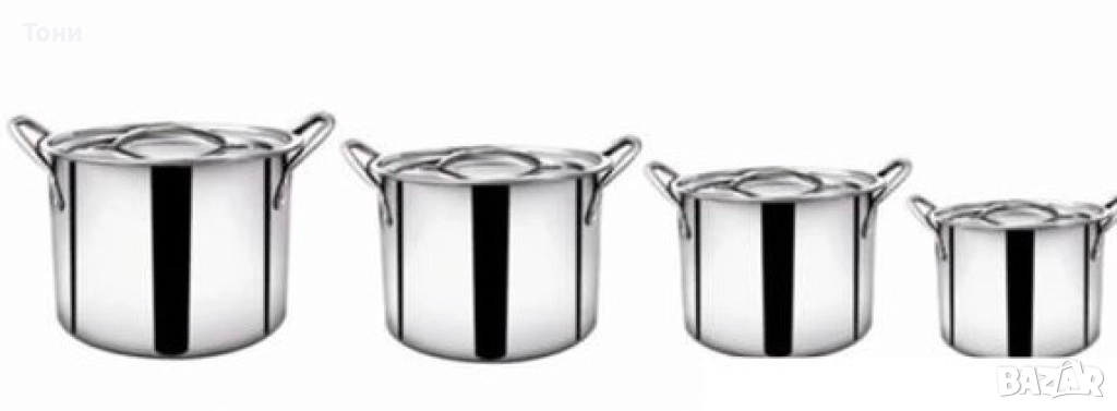 Тенджери от неръждаема стомана, 4 броя /МАТЕРИАЛ: НЕРЪЖДАЕМА СТОМАНА КОЛИЧЕСТВО: 4БР РАЗМЕРИ: 24CM, 26CM, 28CM & 30CM/ диаметър 24 см, височина 17 см (7.57ltr); диаметър 26cm, височина 19cm (11.36ltr); диаметър 28 см. височина 21см (15.14ltr); диаметър 30 см, височина 23 см (18,92 ltr) - Дебелина - 0,4 мм ✅ Чисто нови и висококачествени съдове за готвене. ✅ Този комплект е изработен от здрав и дълготраен материал от неръждаема стомана. ✅ Тези тенджери имат удобни незалепващи повърхности за лесно готвене и почистване. ✅ Супер комплектът се състои от 4 части с различни размери в комплект. ✅ Всичките 4 части се доставят с капак от неръждаема стомана. Със своя атрактивен и иновативен дизайн, който пасва точно във вашата кухня, той потапя тялото на нагревателя, така че разпространява топлината бързо и равномерно, като ви гарантира, че храната ви е приготвена фино. ✅ Лесен за почистване и подходящ за съдомиялна машина. ✅ Подходящ за индукционна печка. ✅ Страхотен за домашна употреба или ресторант. ✅ Тези тенджери от неръждаема стомана са чудесно допълнение към всяка кухня. ??️