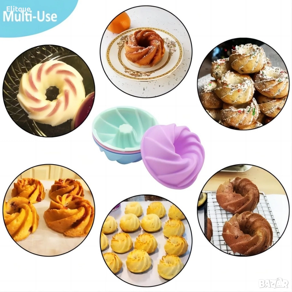 Комплектът от 12 броя силиконови форми за мъфини е практичен и удобен аксесоар за всяка кухня. ? Тези формички предлагат гъвкавост и лесност при изваждане на мъфините след печене, като освен това са идеални за използване както в домашни условия, така и в професионалната кухня. ?? Силиконовите форми са лесни за почистване и могат да бъдат използвани многократно, като освен това са устойчиви на високи температури. ?? Този комплект е идеален за приготвяне на различни видове мъфини, къпчино, чийзкейкове и други вкусни десерти, които ще зарадват всички любители на сладкото. ?✨