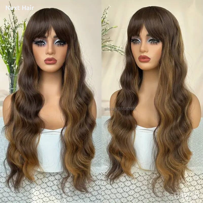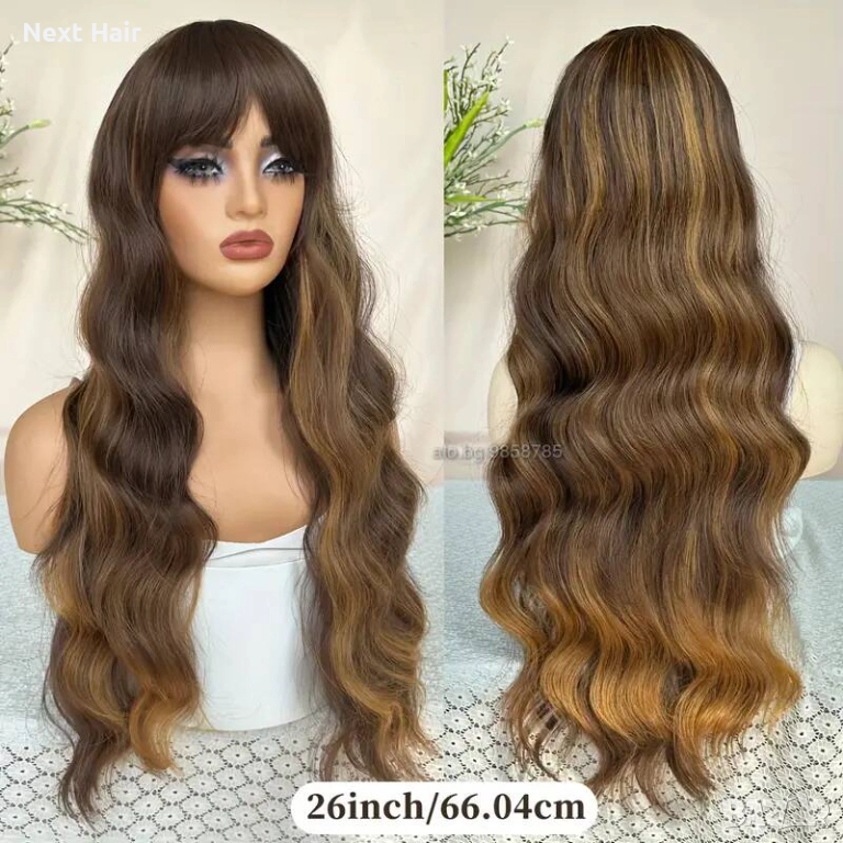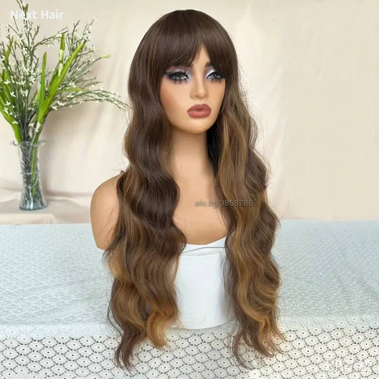 Кафява перука с руси кичури и бретон → Обява 52897424